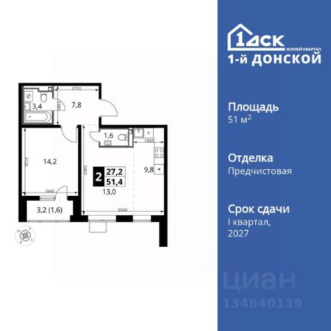 Прямая продажа от застройщика! Жилой Комплекс класса Комфорт Плюс. Продаётся 2-к квартира номер 689 общей площадью 49 кв.м. на 24-м этаже 24 этажного здания. Отделка Whitebox. Особенности квартиры: - МЦД-5 в пешей доступности - Квартал с южным садом - Свои 3 детских сада и 2 большие школы - Распашная планировка - отличное сочетание удобства и свободы. - Раздельный санузел - больше удобства для всех членов семьи. - Евроформат - просторное и удобное жилье с отличной планировкой. - Увеличенная высота потолков - ощущение простора и легкости. - Можно оборудовать рабочее место - комфорт для работы и учёбы. - Линейная кухня - функциональность и практичность в одном решении. - Просторная лоджия - идеальное место для уютных вечеров. Квартира с предчистовой отделкой (White box). Вам не придется заниматься черновыми и трудоёмкими работы, а чистовую отделку и дизайн - сделайте на свой вкус. Информация о комплексе: Одно из преимуществ проектов 1- ДСК большие застекленные лоджии. Другое преимущество честный евро-формат. Во всем проекте предусмотрена система Умный дом. В состав устанавливаемого пакета устройств входит: WiFi реле для управления группами потребителей, беспроводной кран перекрытия с эл. приводом, беспроводной сенсор протечки, Яндекс Станция Мини. Его расположение можно назвать удачным за счет транспортной доступности и близости к природным объектам. По соседству лес, а в каждом дворе плодовые деревья. Весной квартал окутывает бело-розовое облако: это цветут яблони, груши, сливы. К августу в воздух наполняется ароматом созревших плодов. Зимой среди покрытых инеем деревьев протянулась лыжня. Транспортная доступность: - Общественный транспорт: Действующая ж/д станция Булатниково (в перспективе будущая МДЦ D5) в пешей доступности, всего 10-12 минут. - Личный автотранспорт: Удобный выезд на трассу М4-Дон в сторону Москвы и области 850 м, до МКАД - 1 км Внутренняя инфраструктура: Красивые продуманные подъезды - еще одно преимущество проекта 1-й Южный. Вход в сквозные подъезды есть и с улицы, и со двора. Благодаря сплошному остеклению в них всегда светло и уютно. Подъезды расположены на уровне земли, поэтому и молодым родителям с коляской, и жильцам с ограниченными возможностями вход и выход неудобств не доставят. В помещении предусмотрено место под стойку ресепшен с выводом инженерных сетей. Если жильцы решат на общем собрании, что необходим охранник или консьерж, организовать для них рабочее место можно быстро и с минимальными затратами. В подъездах предусмотрены уборные для детей и взрослых. Колясочные в каждом подъезде позволяют поддерживать порядок и чистоту на этажах. На случай прогулки с четвероногим питомцем в непогоду в подъездах устроены лапомойки. Во дворах и на общественных территориях 1-ого Южного столько всего интересного для юных обитателей. Собственные 3 детских сада и 2 больших школы буквально под окнами Изюминка проекта - пешеходный бульвар-дендрарий, он идеален для семейных прогулок. По стор