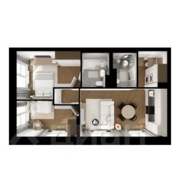 Евро-двушка 46.3м2, жилая комната 1 - 19,1 м2, жилая комната 2 - 11,3 м2, кухня-ниша 5 м2, с/у совмещенный 4,2 м2, холл 7 м2, огромная лоджия из спальни.