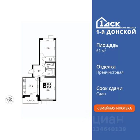 Продаётся 2-комнатная квартира в сданном доме (Ново-Молоковский, 1 (Корпус 13)), срок сдачи: IV-кв. 2024, общей площадью 43 кв.м., на 9 этаже. Расположение, транспортная доступность