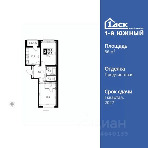 Продается 2-комнатная квартира общей площадью 51.8 кв. метров на 52 этаже жилого комплекса ВЕЙВ. Комплекс располагается на юге Москвы в районе Москворечье-Сабурово. В пешей доступности расположены станция МЦД "Москворечье" и станция метро "Борисово". Для автомобилистов есть удобное сообщение с Каширским шоссе. Первая очередь строительства носит название "Оттенки синего" и состоит из четырех башен, высотой от 14 до 52 этажей: Azure, Bondi, Indigo, Sapphire. Автором первой очереди является бюро "СПИЧ". Ключевым преимуществом ВЕЙВ является благоустроенная набережная со смотровой площадкой, беговыми и велодорожками, детскими и спортивными. В центре квартала появится зеленый пешеходный бульвар с детскими и спортивными площадками, а также зоной тихого отдыха. Вокруг жилого квартала сосредоточены более 2000 га зеленых пространств: парк "Борисовские пруды", Братеевский каскадный парк, парк 850-летия г. Москвы, музеи-заповедники "Царицыно" и "Коломенское". Особое внимание в ВЕЙВ уделено интерьерам лобби, выполненным в современном стиле с яркими акцентами. Стильное пространство разделено на несколько зон: ресепшен, зона ожидания с Wi-Fi и мягкими креслами, колясочная и лаконичный лифтовый холл. Для автомобилистов предусмотрен двухуровневый подземный паркинг с видеонаблюдением, усилителем сотовой связи и системой распознавания номеров.