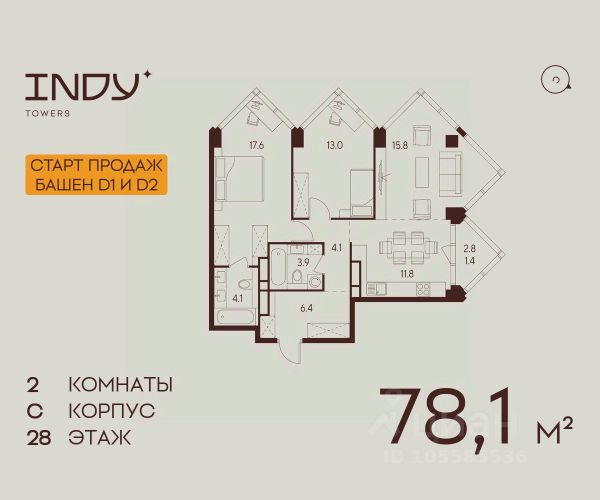 • ✓ В базе Циан 40 2-комнатных квартир на последнем этаже рядом с метро Хорошёвская