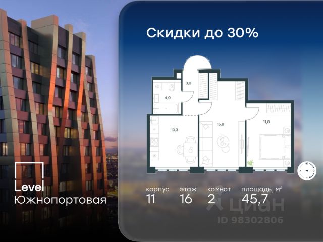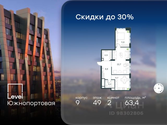 Цена указана с учётом скидки при 100%-й оплате, несубсидированной ипотеке, рассрочке (кроме программы "Рассрочка 0%"). В северной части района Печатники продается 2-комнатная квартира площадью 47.30 кв.м без отделки. Квартира расположена на 16 этаже 16-этажного корпуса 11 в жилом комплексе комфорт-класса Level Южнопортовая (компания Level Group/Левел групп). Отличная транспортная доступность: - 10 мин. пешком до станции метро "Кожуховская"; - 20 мин. пешком до станции МЦК "Дубровка"; - 3 мин. на авто до ТТК; - 13 мин. на авто до Садового кольца; - 15 мин. на авто до Бульварного кольца. Продуманный архитектурный проект: - авторская архитектура от бюро СПИЧ; - уникальные виды на реку, парки и достопримечательности города; - высота потолков в квартирах до 6 м; - окна высотой до 1,87 м с высоким коэффициентом сопротивления теплоотдаче. Расположение: Level Южнопортовая строится в северной части района Печатники - самой приближенной к центру. Здесь будет сформирован новый район "Южный порт", где построят крупный жилой и общественно-деловой центр, аналогичный Москва-Сити. В течение 10-12 лет в этом месте появятся не только жилые дома, но и развитая инфраструктура для жизни и работы. А еще совсем рядом находится набережная Москвы-реки, где планируется построить причалы для речных трамвайчиков и канатную дорогу. Уже сейчас вокруг жилого комплекса работают десятки магазинов и торговых центров, рядом расположено 6 парков, среди которых музей-заповедник "Коломенское". В 10 минутах пешком - 2 муниципальных и 2 частных детских сада, 7 общеобразовательных школ. Внутренняя инфраструктура: Для отдыха жителей в каждом корпусе предусмотрено лобби, оснащенное местами для отдыха, гостевыми санузлами и лапомойками, а в отдельных корпусах - камином. За счёт больших окон и высоких потолков пространства будут наполнены воздухом и светом. На первых этажах жилого комплекса откроются магазины, салоны красоты, фитнес-центр. Для детей строятся собственные детский сад и школа. Благоустройство: Внутренний двор комплекса разработан совместно с бюро GAFA. Основная идея - создать аналог Центрального парка в Нью-Йорке, гармонично сочетая высотные здания и большое изолированное парковое пространство. Вся площадь двора-парка будет огорожена и составит более 2 га, из которых 45% - озеленение. Одним из самых важных ландшафтных элементов здесь станет небольшая речка, наполняющаяся во время дождя. Вокруг неё появится сеть из островов, внутри которых расположатся тематические зоны спорта и отдыха. Технологии и инженерия: - автоматическая передача в управляющую компанию показаний квартирных счётчиков; - телефонная связь, телевидение и интернет на базе оптической мультисервисной сети; - гостевой Wi-Fi в лобби и на территории двора; - единый ключ доступа для входа на территорию комплекса.