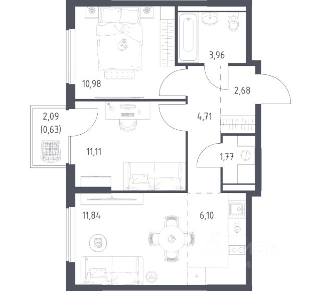 Строим кварталы для жизни с заботой о будущем. Предлагается 2-комнатная квартира комфорт-класса площадью 59,98 кв.м в корпусе 18 на 17-м этаже, в жилом комплексе "Пригород Лесное".