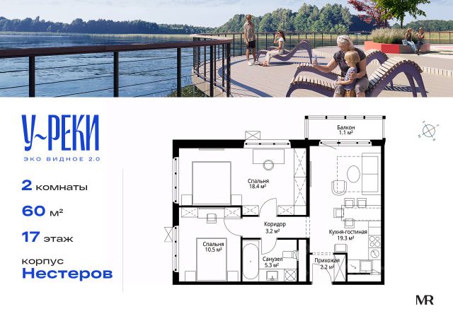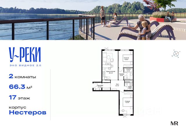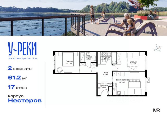 Прямая продажа от застройщика. Продаётся 2-комнатная квартира общей площадью 61.20 м² с предчистовой отделкой в ЖК "У реки. Эко Видное 2.0" на 17-м этаже корпуса Нестеров. Все корпуса введены в эксплуатацию. Выдача ключей - I кв. 2025г. Жилой комплекс "У реки" - уникальный проект комфорт-класса, в котором применяются стандарты строительства и сервиса MR, характерные для проектов девелопера бизнес и премиум-классов. 17-этажный корпус "Нестеров" расположится на живописном берегу реки Купелинка. Из его квартир откроются захватывающие виды на реку и лес на её противоположном берегу. О проекте: - 5 корпусов переменной этажности; - 8 км от МКАД, 30 минут до метро "Домодедовская", в 2025 года запланировано открытие станции МЦД-5 (дорога по Павелецкого вокзала займёт 30 минут); - Безопасные дворы с детскими и спортивными площадками для разных возрастов; - Собственная набережная с променадом, местами для пикников и рыбалки; - Два детских сада и школа на территории; - Развитая инфраструктура района; - Отделка MR Base (white box) Компания MR предлагает своим клиентам специальные условия приобретения квартир в рамках программ ипотечного кредитования от банков-партнеров.
