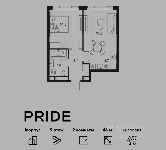 В премиальном жилом квартале Прайд продается 2-комнатная квартира в 1 корпусе, на 11 этаже, в секции 4. Её общая площадь составляет 47.7 м². Пространство включает 1 уютную спальню 14,6 м², просторную кухню-гостиную 21,7 м² и ванную комнату 5,7 м². Ключи в 2026 году. Удобная локация: Жилой квартал расположен в 15 минутах от Цветного бульвара в историческом районе Марьина Роща. До любой точки города быстро и удобно добраться, как на общественном транспорте, так и на авто — комплекс находится всего в 3 минутах от ТТК и в пешей доступности от метро. Яркая архитектура с переменной высотностью от 7 до 22 этажей от именитого бюро APEX формирует запоминающийся облик проекта. Развитая инфраструктура: Территория квартала делится на несколько отдельных частей: открытый просторный бульвар 3500 м² для прогулок и два внутренних камерных двора. Внутри предусмотрены площадки для спорта, места для игр и тихие пространства для отдыха и неторопливого общения. Коммерческие и торговые помещения спроектированы на уровне первых этажей: супермаркеты, магазины, рестораны и кофейни, барбершоп, спа-салон и другие сервисные точки. Образовательный центр со школой на 257 учеников и детским садом на 112 мест на собственной территории квартал - идеальное решение для семей с детьми. Таким образом, внутренняя инфраструктура Прайд обеспечит все базовые потребности будущих жителей. Благоустроенная территория: Ландшафтный дизайн с многоуровневым и замысловатым озеленением будет радовать жителей на протяжении всех сезонов — богатая флора дворов включает в себя несколько десятков видов растений. Лобби как в лучших отелях мира: На первых этажах резидентов и гостей встретят лобби с авторским дизайном от Sundukovy Sisters, бюро знаменито своими работами для отелей и ресторанов премиум-класса во всем мире. Надежный застройщик: Девелопер PIONEER — компания с 24-летней историей. В портфеле — 40 проектов жилой, коммерческой, социальной и многофункциональной недвижимости в Москве и Санкт-Петербурге. С 2001 года было реализовано 2,9 млн м². В настоящее время 1,6 млн м² находятся в стадии проектирования и строительства. Среди новых знаковых проектов девелопера — премиальные жилые кварталы и деловые объекты класса A.