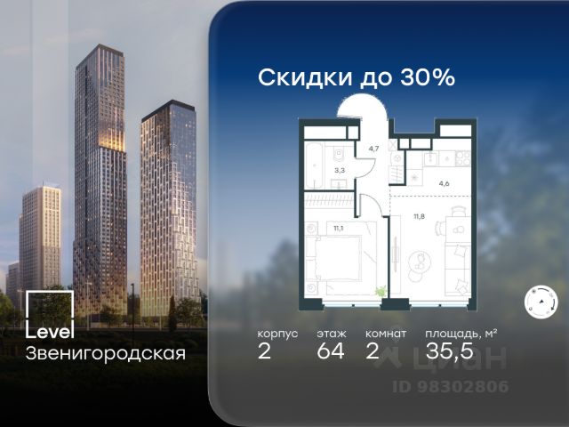 Однокомнатная квартира площадью 56,7 кв.м. на 47 этаже дома бизнес-класса "CRYSTAL Трилогия". Жилой комплекс CRYSTAL Трилогия комфорт в сердце Хорошево-Мнёвников Удобное расположение и транспортная доступность CRYSTAL Трилогия расположен в престижном районе Хорошево-Мнёвники, на улице Генерала Глаголева, всего в нескольких минутах от живописного Серебряного бора и набережной Москвы-реки. Из окон открываются панорамные виды на воду и зелёные зоны, создавая ощущение гармонии с природой. Автомобильная доступность • Звенигородское шоссе и проспект Маршала Жукова быстрый выезд в любую часть города. • 7 км до ТТК, 9 км до МКАД, 10 км до Садового кольца. • Общественный транспорт: • Ближайшая станция метро "Народное ополчение" (2 км). Добраться можно пешком или на автобусе. • В пешей доступности строятся 3 новые станции метро, что повысит транспортную связанность района. Инфраструктура: всё для жизни в шаговой доступности Комплекс входит в состав масштабного квартала Union Park (40 га) это современная городская среда с продуманной инфраструктурой. Образование и развитие: • Лучшие школы Москвы: 1515, 1517, 138, Курчатовская школа. • Детские сады: "Wow Kids Серебряный бор", логопедический "ДАРвиль". • Музыкальная школа им. В. В. Андреева. Медицина и спорт: • Поликлиника "Семейный доктор", медцентр "Мед-Лайт", стоматология. • Спорткомплекс "Серебряный" с бассейном, тренажерным залом и солярием. Магазины и рестораны: • Премиальные магазины: "Азбука вкуса", "ВкусВилл", "Лента", "Магнолия". • Рестораны и кафе: Asia Inn, Wells Home Cafe, рыбный ресторан The Mope. Футуристичная архитектура с продуманным комфортом CRYSTAL Трилогия это уникальный дизайн и эргономичные планировки: Внешний облик: • Кристаллическая архитектура с панорамными эркерами и фасадами в оттенках горького шоколада. • Трехуровневая структура, где на верхнем ярусе вы увидите геометрические эркеры с панорамным остеклением, на среднем уровне расположены квартиры с окнами на 1-2 стороны, а на нижнем отделка австрийским клинкерным кирпичом. Внутреннее пространство: • Светлые входные группы с лаунж-зонами для отдыха и мероприятий. • Подземный паркинг (по машиноместу на квартиру) и кладовые для хранения. • Закрытые дворы с спортивными зонами: • Теннисный корт. • Площадки для воркаута. • Беговые дорожки. • Поле для игровых видов спорта. Квартиры с продуманными планировками • 14 комнатные варианты. • Высокие потолки и панорамное остекление для максимальной инсоляции. • Ровные стены и черновая/чистовая отделка на выбор. • Готовые решения для комфортного заезда.