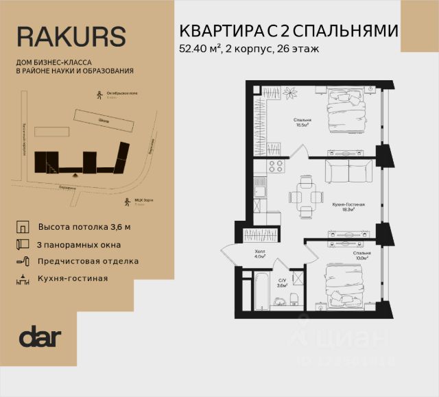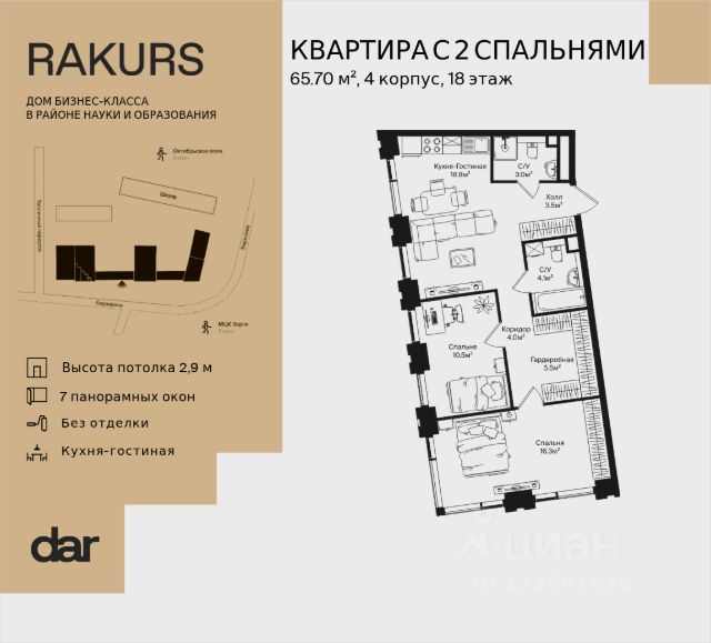 Продаётся 2-комнатная квартира 65.70 м² в жилом комплексе Ракурс. Квартиру отличают панорамное остекление, потолки 2,9 м, улучшенная шумо и воздухоизоляция. Дом сдаётся в 1 квартале 2028 года, продажи проходят через эскроусчета. Подземный паркинг, коворкинг, закрытая благоустроенная территория с фонтаном и артобъектами. Гибкие условия покупки. Rakurs — место, в котором жизнь приглашает к исследованию. Концепция проекта knowledge-centric среда, которая выражается здесь в образе жизни: • атмосфере интеллектуальной среды, • доступности образования, • фокусе на возможности для развития. RAKURS разместился в районе науки и окружен исследовательскими институтами и образовательными учреждениями, при этом на территории построена своя школа с уникальной концепцией. Расположенный на пересечении улиц Маршала Бирюзова и Берзарина, недалеко от станций метро "Октябрьское поле" и "Зорге", дом угождает транспортной доступностью автомобилистам и пешеходам. Инфраструктура же района создана с заботой о людях: здесь много парков, кафе и других уютных мест для отдыха. В состав комплекса входят три башни высотой 18, 26 и 44 этажа, каждая из которых имеет свой запоминающийся силуэт. Между собой башни связаны среднеэтажными строениями с индивидуальными фасадами. Композиция и пластика корпусов, а также панорамное остекление башен обеспечивают квартиры максимальным количеством дневного света и выигрышными видами на центр города и Москву-Сити. Упор на функциональность не лишает проект его уникального образа — все башни имеют неординарную форму с харизматичными уступами и консолями. Rakurs предлагает широкий выбор уникальных вариантов жилья — от студий до эксклюзивных квартир с приватными террасами. Проект спроектирован с фокусом на биофильность и функциональность. Во дворах Rakurs можно насладиться завтраком на террасе кафе, игрой с детьми или спортом на свежем воздухе. В Rakurse cвой комьюнити-центр - многофункциональное пространство для работы, отдыха, общения и развития. Одна из важнейших частей центра — частная библиотека с лаундж-зоной. Книжный фонд отбирается для нее кураторской командой, а дизайн пространства сделан так, чтобы жители могли почувствовать умиротворяющую атмосферу библиотечного зала. Идея knowledge-centric среды поддерживается здесь и книжным магазином с лекторием, а также зонами для самостоятельной учебы и занятий с преподавателями.