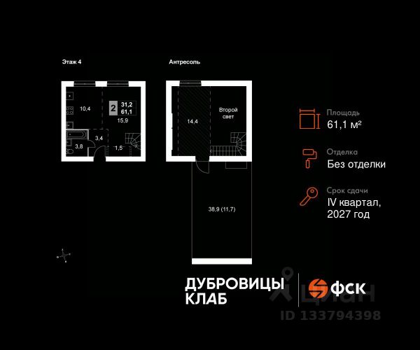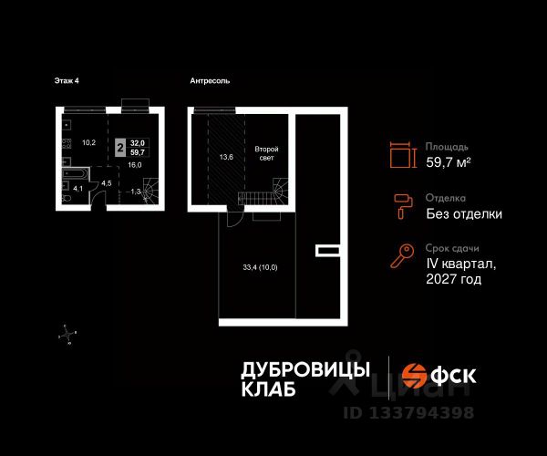 Прямая продажа от застройщика! Загородный жилой комплекс комфорт-класса. Продаётся 2-к квартира 172 общей площадью 61.0 кв.м на 4-м этаже 4 этажного дома. Без отделки. Расположение комплекса: "Дубровицы Клаб" — это современный малоэтажный комплекс комфорт-класса, который сочетает в себе атмосферу уюта загородной жизни и все преимущества развитой городской инфраструктуры. В проекте представлено два формата жилья - комфортные таунхаусы и эргономичные квартиры. Территория "Дубровицы Клаб" приватные зелёные дворы без автомобилей, школа, детский сад и спорткомплекс с бассейном. Транспортная доступность: - 20 минут на машине до станции МЦД "Подольск" - 50 минут на машине до МКАД - 50 минут на машине до ст.метро Улица Скобелевская Внутренняя инфраструктура: "Дубровицы Клаб" объединяет динамику городской жизни и спокойствие природы, создавая пространство, где работа и отдых, движение и умиротворение сливаются в единый поток — в жизнь, наполненную балансом и вдохновением. Место силы — это философия жизни, воплощённая в благоустроенной среде загородного комплекса "Дубровицы Клаб". Здесь всё создано для восстановления энергии и гармонии: прогулочные маршруты, зоны отдыха, воркаут-площадки и природные пространства, плавно переходящие в уют жилых кварталов. Для удобства жителей на территории комплекса открыта торговая галерея, где собрано всё необходимое: супермаркет, аптека, зоомагазин, винный бутик, лавка деликатесов, пекарня, химчистка и дом быта.