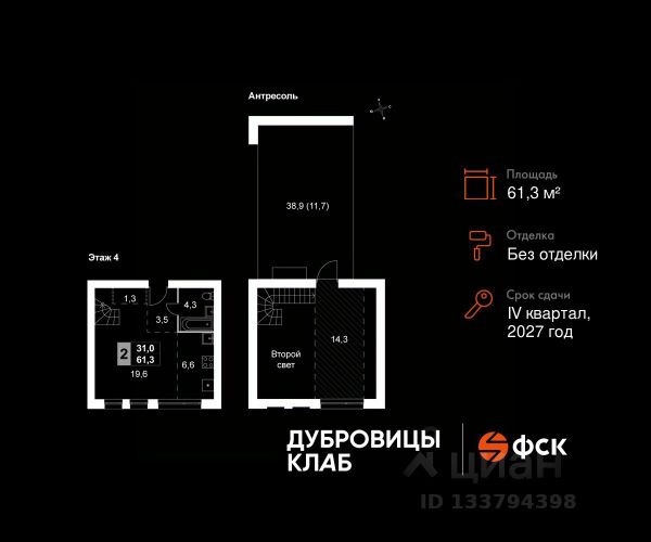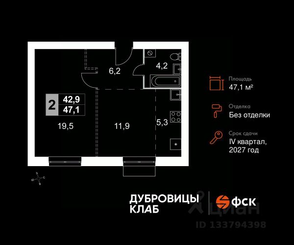 Прямая продажа от застройщика! Загородный жилой комплекс комфорт-класса. Продаётся 2-к квартира 141 общей площадью 42.3 кв.м на 4-м этаже 4 этажного дома. Без отделки. Расположение комплекса: "Дубровицы Клаб" — это современный малоэтажный комплекс комфорт-класса, который сочетает в себе атмосферу уюта загородной жизни и все преимущества развитой городской инфраструктуры. В проекте представлено два формата жилья - комфортные таунхаусы и эргономичные квартиры. Территория "Дубровицы Клаб" приватные зелёные дворы без автомобилей, школа, детский сад и спорткомплекс с бассейном. Транспортная доступность: - 20 минут на машине до станции МЦД "Подольск" - 50 минут на машине до МКАД - 50 минут на машине до ст.метро Улица Скобелевская Внутренняя инфраструктура: "Дубровицы Клаб" объединяет динамику городской жизни и спокойствие природы, создавая пространство, где работа и отдых, движение и умиротворение сливаются в единый поток — в жизнь, наполненную балансом и вдохновением. Место силы — это философия жизни, воплощённая в благоустроенной среде загородного комплекса "Дубровицы Клаб". Здесь всё создано для восстановления энергии и гармонии: прогулочные маршруты, зоны отдыха, воркаут-площадки и природные пространства, плавно переходящие в уют жилых кварталов. Для удобства жителей на территории комплекса открыта торговая галерея, где собрано всё необходимое: супермаркет, аптека, зоомагазин, винный бутик, лавка деликатесов, пекарня, химчистка и дом быта.
