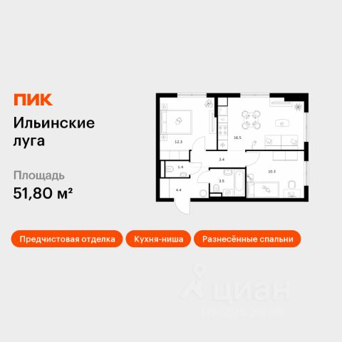 Продаётся 2-комн. квартира площадью 51,8 кв.м на 9 этаже 9 этажного дома (Корпус 3.1, Секция 1) проекта ПИК Ильинские луга. Светлый просторный подъезд на уровне земли, функциональная планировка, большие окна, предчистовая отделка. Жилой район "Ильинские луга" находится в 10 километрах от МКАД по Новорижскому шоссе, в 20 минутах на автомобиле от станций метро "Волоколамская", "Тушинская" и "Строгино". В будущем ближе к проекту, в 9 минутах пути на машине, откроется станция "Ильинская" Рублёво-Архангельской линии, которая будет соединять Арбатско-Покровскую линию и Большую кольцевую линию. Сейчас в квартале начались продажи в корпусах 3.2, 3.3, 3.4, 3.5 и 3.6. "Ильинские луга" — масштабный проект, в который входит девять детских садов, четыре школы и поликлиника. Он строится в престижном и экологичном районе среди лесов и памятников природы. За 5 минут от жилого квартала можно доехать до Рублёво-Успенского шоссе, а за 30 минут — до центра Москвы. До крупного торгового центра "РИГАМОЛЛ" всего 5 минут на автомобиле, а до ТЦ "Твой дом" и гипермаркета "Глобус" — 10 минут. В "Ильинских лугах" строятся только девятиэтажные дома — такая архитектура соответствует спокойной жизни за городом. В каждом дворе-парке есть места для отдыха, детские и спортивные площадки. А ещё, здесь уже открыт большой ПлейХаб "Гравити" — современное игровое пространство с космической тематикой, холмами, зонами для игр и отдыха жителей любого возраста. На первых этажах уже работают магазины, кафе и пекарни. Места для отдыха от "Ильинских лугов" тоже недалеко: 10 минут на машине — и вы в музее-усадьбе "Архангельское". Также рядом находится Лохин остров — памятник природы, где водятся речные черепахи, есть места для кемпинга и возможность сплавиться по реке. Артикул 1001368 (Застройщик ООО "СЗ "ГРАДОЛИМП")