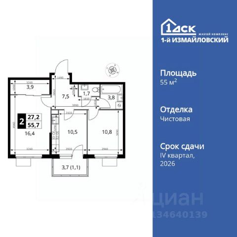 • ✓ В базе Циан 152 2-комнатных квартир на последнем этаже рядом с метро Щёлковская