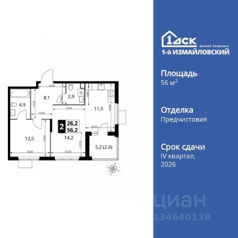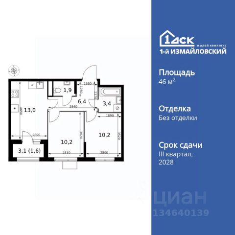 Прямая продажа от застройщика! Жилой Комплекс Комфорт класса. Продаётся 2-к квартира номер 335 общей площадью 46 кв.м. на 25-м этаже 25 этажного здания. Без отделки. Цена с учётом скидки. Особенности квартиры: - Линейная планировка - максимальная функциональность и удобство. - Раздельный санузел - больше удобства для всех членов семьи. - Увеличенная высота потолков - ощущение простора и легкости. - Можно оборудовать рабочее место - комфорт для работы и учёбы. - Лоджия - уютное место для отдыха и тишины. Информация о комплексе: Современный архитектурный проект "1-й Измайловский" - идеальное место для проживания, расположенное в восточной части Москвы в окружении 14 000 гектаров леса. Комплекс пронизан атмосферой здорового образа жизни и благополучия. Сиреневый сад и близлежащие лесопарки - это места, где можно насладиться лыжными прогулками зимой и тонизирующими пробежками летом. Расположенный между Щелковским шоссе и Амурской улицей, "1-й Измайловский" осмысляет себя не столько через близость к городским точкам притяжения, сколько через соседство с зелеными пространствами и спортивными объектами. Он отгорожен от шоссе застройкой первой линии и собственными садами здоровья. В его окнах - изумрудное море парка "Лосиный остров" и густые кроны окрестных дворов. В его графике - занятия спортом и прогулки в Измайлове. Транспортная доступность: Не более 2,5 км до станций метро "Щёлковская" и "Черкизовская" и МЦК "Локомотив". Щёлковское шоссе соединяет квартал с Северо-восточной хордой и МКАД, Центральным автовокзалом и Восточным железнодорожным вокзалом. Две автобусные остановки в паре минут ходьбы и 11 маршрутов общественного транспорта. На автомобиле 3 минуты до СВХ 12 минут до ТТК 15 минут до Садового кольца Внутренняя инфраструктура: Комплекс находится в исторически сложившемся районе Москвы с хорошим качеством и плотностью инфраструктуры. Торговые центры и сетевые магазины -6 детских садов, включая собственный детский сад на 125 мест -3 школы, включая собственную школу -Поликлиники и медицинские центры -Парки и зоны отдыха Расположение архитектурного проекта создает все условия для тех, кто стремится к здоровому образу жизни и для тех, кто уже сделал выбор в его пользу. В ближайшем окружении расположены несколько стадионов и множество спортивных объектов для занятий спортом на любой вкус: от всеми любимого футбола, баскетбола и до конного спорта. В окружении проекта более 30 километров организованных беговых и велодорожек.