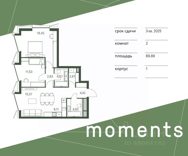 Цены указаны с условием 100% оплаты и стандартной ипотеки. Продается 2-к. квартира номер 323 общей площадью 69.89 кв.м. на 30-м этаже 30 этажного дома, корпус 1. С отделкой White Box. Moments — ЖК бизнес-класса, расположен на расстоянии вытянутой руки от старинного усадебного парка Покровское-Стрешнево. Moments — это единение города и природы, дом, который помогает обрести гармонию и баланс в жизни. Moments расположен на Волоколамском шоссе с удобным выездом в центр и в область, а также с расположенными в пешей доступности объектами транспортной инфраструктуры (МЦК и МЦД-2). Жилой комплекс будет состоять из 3 очередей — 8 корпусов высотой от 4 до 47 этажей. Здания будут расположены под разными углами для максимальной открытости солнцу и максимально роскошным видовым характеристикам. Внутренний двор: Иммерсивное благоустройство от британского бюро Gillespies и West8 сфокусировано на эмоциональном и чувственном опыте. Каждая прогулка по Moments погружает в путешествие со сменой сценариев и плавным потоком уникальных моментов. - Пешеходная экотропа,которая соединяет комплекс с парком Покровское-Стрешнево - Двор с фонтаном - Зеленые сады и лаунж-зоны - Пространства для пикников и общения - Зоны активного отдыха. Детские и спортивные площадки - Пешеходные тропы и велодорожки - Разнообразная коммерческая инфраструктура - Детский сад на 175 мест - Школа на 300 мест - Игровые площадки из натуральных материалов - Сенсорные сады - Безбарьерное зонирование