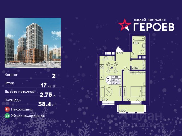 Продаётся 2-комнатная квартира в формате евро 35.10 кв. м. в жилом комплексе "Героев" в Балашихе, Железнодорожный. Квартира расположена на 19 этаже 611 корпуса. В наличии квартиры с отделкой. Всего 40 минут до центра Москвы. При покупке квартиры в сданном доме ключи выдаются сразу! Жилой квартал "Героев" - это уютный проект для семей с детьми. В квартале созданы все условия для досуга всех возрастов: игровые и спортивные площадки, места для отдыха и прогулочные зоны. За 15 минут можно дойти от дома до Ольгинского лесопарка, популярного места для отдыха на свежем воздухе. На территории жилого комплекса уже открыт детский сад на 250 мест и началось строительство еще одного - для 220 малышей, а также школы для 1320 учеников. Рядом работают магазины, кафе, супермаркеты, пункты выдачи. Преимущества: • В уютных светлых квартирах с просторными кухнями-гостиными удобно встречать гостей и проводить время наедине друг с другом. • Благодаря увеличенному остеклению в комнатах много света. • Квартиры продаются с отделкой, можно заселяться сразу после получения ключей.