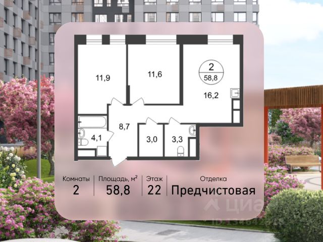 Продается двухкомнатная квартира без отделки в 7 фазе города-парка "Первый Московский". Общая площадь квартиры - 63,8 кв. м, этаж 20 из 20. Срок сдачи - 1 квартал 2027 года. Тип дома - монолитный. ТОЛЬКО ДО 31 МАРТА выгодные условия на приобретение квартиры в ипотеку или рассрочку. Звоните - и мы подберем оптимальное предложение под ваш запрос! Корпус состоит из 3 секций. Город-парк "Первый Московский" расположен всего в 7 км по Киевскому шоссе от МКАД на территории Новой Москвы. Из города-парка прямой выезд на Киевское шоссе и трассу Солнцево-Бутово-Варшавское шоссе. ТРАНСПОРТНАЯ ДОСТУПНОСТЬ: - 5 мин. на личном автомобиле или 10 мин. на автобусе 189 и 147 до станции метро "Филатов Луг" - 25 мин. пешком до станции метро "Филатов Луг" ИНФРАСТРУКТУРА: Около 7 фазы запланировано строительство детского сада, школы, 2 многоуровневых паркингов. Также на территории проекта есть все необходимые объекты действующей социальной и бытовой инфраструктуры: 8 детских садов, 5 школ, ТЦ, магазины, паркинги, аптеки и др. БЛАГОУСТРОЙСТВО: - Дворы без машин - Игровые зоны для детей, зоны для занятия спортом, зоны для отдыха с навесами/качелями - Детские площадки разделены по возрастным группам - Пешеходный и веломаршрут с двухполосной велодорожкой 2,5 м в ширину - Озеленение с растениями всесезонного цветения ОСОБЕННОСТИ АРХИТЕКТУРЫ: В каждой секции 3 корпуса предусмотрены: - колясочные во входных группах - кладовые помещения с -1 по 20 этажи - коммерческие помещения на 1 этажах - по 4 лифта: 2 пассажирских, 2 грузовых - видеонаблюдение, установленное в холлах первых этажей, у подъездов и на прилегающей территории АВТОРСКИЙ ДИЗАЙН: Входные группы выполнены по авторскому дизайну, оснащены системой "тёплый пол". В каждой входной группе будет располагаться комфортабельная зона ожидания с мягким диваном, акцентными пуфами и столиком.
