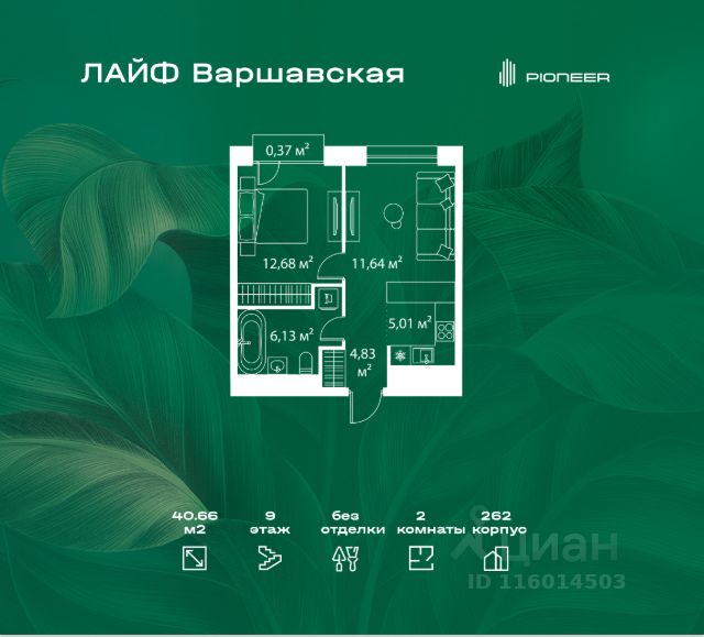 Продается 2-комн. кв-ра площадью 47.60 кв.м на 9 этаже 9 этажного монолитного дома в ЖК "ВЕЙВ" от Группа ЛСР. Вторая очередь ВЕЙВ представляет собой архитектурный ансамбль из семи корпусов переменной этажности, объединенных общим стилобатом, в котором расположатся различные объекты инфраструктуры. Со стороны улицы Борисовские Пруды ВЕЙВ предстает тремя стометровыми башнями, выполненными футуристичными каскадами из стекла и металла. С противоположной стороны — три невысоких здания с непохожими друг на друга фасадами, придающими комплексу свой характер и уникальность. Ключевым преимуществом ВЕЙВ является благоустроенная набережная со смотровой площадкой, беговыми и велодорожками, детскими и спортивными. В центре квартала появится зеленый пешеходный бульвар с детскими и спортивными площадками, а также зоной тихого отдыха. Вокруг жилого квартала сосредоточены более 2000 га зеленых пространств: парк "Борисовские пруды", Братеевский каскадный парк, парк 850-летия г. Москвы, музеи-заповедники "Царицыно" и "Коломенское". Особое внимание в ВЕЙВ уделено интерьерам лобби, выполненным в современном стиле с контрастными акцентами. Стильное пространство разделено на несколько зон: ресепшен, зона ожидания с Wi-Fi и мягкими креслами, колясочная и лаконичный лифтовый холл. Для автомобилистов предусмотрен подземный паркинг с видеонаблюдением, зоной с оборудованием для подкачки колес, усилителем сотовой связи и системой распознавания номеров.