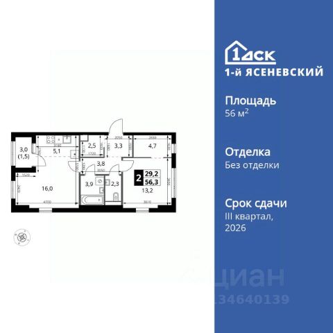 УСПЕЙ ПО СЕМЕЙНОЙ ИПОТЕКЕ БЕЗ НАЦЕНКИ! Квартиры в Москве от 45 000 рублей в месяц! Прямая продажа от застройщика! Жилой Комплекс класса Комфорт Плюс. Продаётся 2-к квартира номер 113 общей площадью 56.3 кв.м. на 18-м этаже 18 этажного здания. Без отделки. Цена с учётом скидки. Особенности квартиры: - Квартиры рядом с метро - м. Корниловская 9 мин пешком - 63 га лесопарка за окнами - Школа c it-кластером и бассейном. 2 детских сада - Мастер-зона с гардеробной. Просторное место для отдыха и удобного хранения вещей. - Распашная планировка - отличное сочетание удобства и свободы. - Увеличенное количество окон - дополнительное освещение и свежий воздух. - Окно в гардеробной - светлый и удобный уголок для хранения вещей. - Раздельный санузел - больше удобства для всех членов семьи. - Евроформат - просторное и удобное жилье с отличной планировкой. - Увеличенная высота потолков - ощущение простора и легкости. - Гардеробная - удобство для хранения и организации вещей. - Просторная гардеробная - место для вашего личного пространства. - Ниша под шкаф - компактное и удобное место для вещей. - Лоджия - уютное место для отдыха и тишины. Информация о комплексе: В жилом комплексе комфорт-плюс класса "1-го Ясеневского" доступны преимущества двух стилей жизни. Ведь в пешей доступности метро, школа с 25-метровым бассейном и IT-кластером и при этом целых 63 га благоустроенного Троицкого лесопарка под окнами, где так приятно дышать свежим воздухом и слушать пение птиц. Собственная закрытая территория "1-го Ясеневского" представляет собой уютный оазис. Здесь и зеленый освещенный бульвар для прогулок, система велодорожек, маленькая городская площадь, кафе, пекарни и кофе поинты. А еще дворы без машин и многоэтажная парковка. Изюминка территории - фруктовые деревья во дворах и городские сады. "1-й Ясеневский" - всего в 1 км от МКАД, на территории новой Москвы. Жилой комплекс, где есть все необходимое для современного человека. Транспортная доступность: До метро "Корниловская" - 12 минут пешком До метро "Тютчевская" - 25 минут пешком До метро "Теплый стан" - 10 минут на транспорте До метро "Ольховая" - 30 минут на общественном транспорте Личный автотранспорт: Выезд на Калужское шоссе - 500 м МКАД - 1 км Внутренняя инфраструктура: ЖК "1-й Ясеневский" можно назвать идеальным местом для жизни семьи с детьми. Здесь буквально за домом находится Троицкий лесопарк - излюбленное место прогулок молодых родителей. А во внутренних дворах под детские площадки выделены специальные зоны. Они оборудованы всем, что нужно для счастливого детства: современными и максимально безопасными качелями, песочницами и лазалками. Оборудование и игровые сценарии на детских площадках спроектированы вместе с командой детских психологов для правильного развития ребенка и для повышения их интереса. Также рядом с домом два детских садика, один из которых уже построен и школа на 1100 мест. Школу по праву можно назвать образцовым учебным заведением. В ней з