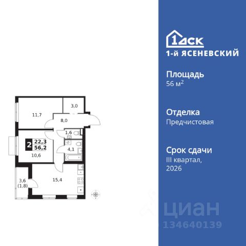 • ✓ В базе Циан 10 2-комнатных квартир на последнем этаже в поселении Мосрентген в Москве