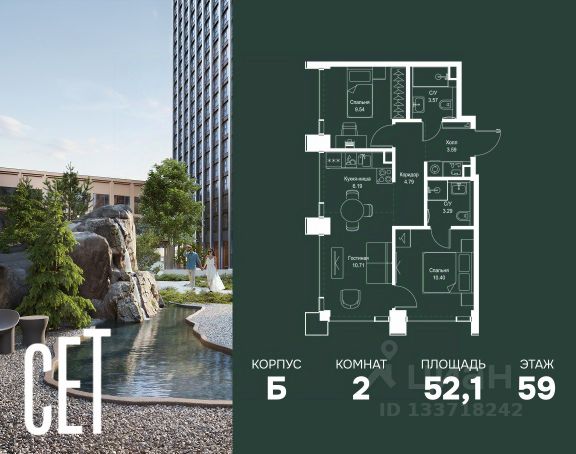 Прямая продажа от застройщика. Продаётся 2-комнатная квартира общей площадью 52 м² с предчистовой отделкой в ЖК Веер на 22-м этаже 22 этажного дома. Жилой комплекс бизнес-класса Веер от компании MR — это футуристичный мультиквартал, расположенный в престижной локации на западе Москвы. Благодаря переменной высоте башен — двух 22-этажных, 46-этажной и двух 59-этажных — возникает динамичность в силуэте комплекса, а его яркий образ вносит разноплановость в архитектурный пейзаж района. Расположение и транспортная доступность: • Веер удобно расположен в непосредственной близости от Кутузовского проспекта, обеспечивая быстрый доступ к центральным районам Москвы • Комплекс находится непосредственно напротив самого большого природного заказника в Москве - парка "Долина реки Сетунь", а за семь минут можно доехать до памятника садово-паркового искусства, Троекуровского леса. • Всего в 15 минутах - центр города, самая престижная бизнес-школа управления России "Сколково", дом творчества "Переделкино". Инфраструктура: Разнообразить свой день резиденты Веер смогут также проводя больше времени на свежем воздухе. Двор разделен на 4 зоны разных эмоций и действий, которые пересечены и соединены веерными прогулочными маршрутами: • Спортивная площадка устроена в глубине "Кленовой рощи" • В "Чайном домике" будет создан навес с утеплением для отдыха в любую погоду • Площадки для детей воплотятся в "Волшебный лес" с цветами, зеркалами и световым дизайном • "Центральная площадь" устроена у водного оазиса живописного пруда. Компания MR предлагает своим клиентам специальные условия приобретения квартир в рамках программ ипотечного кредитования от банков-партнеров.