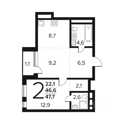• ✅ Объект наибольшей площади: 49,1 м²