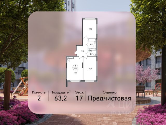 Продается двухкомнатная квартира в городе-парке "Переделкино Ближнее". Общая площадь квартиры - 66,7 кв. м, этаж 17 из 17. Срок сдачи - 3 квартал 2026 года. Тип дома - монолитный. ТОЛЬКО ДО 31 МАРТА выгодные условия на приобретение квартиры в ипотеку или рассрочку. Звоните - и мы подберем оптимальное предложение под ваш запрос! Город-парк "Переделкино Ближнее" расположен в 8 км от МКАД по Боровскому шоссе. ТРАНСПОРТНАЯ ДОСТУПНОСТЬ: - 10 минут пешком до МЦД-4 "Мичуринец" - 15 минут пешком до станции метро "Рассказовка" Солнцевской линии - 10 минут на машине до станции метро "Филатов Луг" Сокольнической линии - 30 минут до центра Москвы - Прямой выезд на дорогу Солнцево-Бутово-Варшавское шоссе, минуя жилую застройку всего ЖК БЛАГОУСТРОЙСТВО: 18 фаза строительства уникальна своим расположением - в шаговой доступности парк на Лукинской улицы, река Алёшинка. На территории 18 фазы строительства будут построены 2 монолитных жилых корпуса повышенного комфорта разной этажности 7, 17 этажей. А также многоуровневый паркинг на 300 м/мест. Вход в жилую часть корпусов каждой секции осуществляется с двух сторон - с наружного контура жилого дома и со стороны дворового пространства, предусмотрен безбарьерный доступ. ВНУТРЕННЯЯ ИНФРАСТРУКТУРА: В рамках данной фазы, для жителей предусмотрено создание пространства, свободного от машин - благоустроенные огороженные дворы с современными детскими и спортивными площадками, разделенными на зоны по возрастам. На территории проекта есть все необходимые объекты социальной и бытовой инфраструктуры: детские сады, школы, магазины, паркинги, аптеки, поликлиники, пожарная часть и др. АВТОРСКИЙ ДИЗАЙН: Современный монолитный дом переменной этажности 7 и 17 этажей. На фасаде предусмотрены корзины для установки кондиционеров. Входные группы домов выполнены по авторскому дизайну. Колясочные располагаются при входе, велопарковка на -1 этаже.