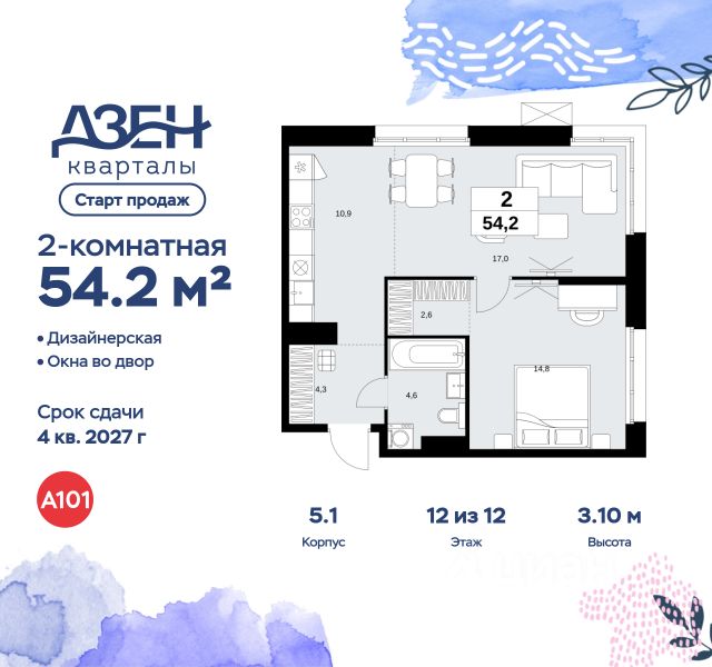 Пешая доступность от метро и московская прописка! Продается уютная 2-комн. квартира площадью 52,5 кв.м на 17 этаже 17 этажного жилого комплекса бизнес-класса Foreville от 3S Group. Общая площадь: 52,5 кв.м., жилая: 39 кв.м., площадь кухни-гостиной: 17 кв.м., высота потолков: 3 м., окна выходят во двор. Квартира предлагается без отделки, что идеально подходит для воплощения собственного дизайнерского решения. Также доступна опция предчистовой отделки, стоимость которой включается в общую цену квартиры. О проекте: Пространство Комплекс располагает крупнейшим приватным двор-парком в Новой Москве площадью 1,2 Га, предлагая жителям огромное пространство для отдыха, спорта и игр на свежем воздухе. Природный ландшафт Внутренний лесопарк с более чем 183 взрослыми деревьями и 10 320 цветущими кустарниками создает уникальную природную атмосферу для каждого времени года. Игровые и спортивные зоны Обширные площадки с безопасным покрытием, специализированные зоны для детей разных возрастных групп и взрослых, включая воркаут и настольный теннис, способствуют активному и здоровому образу жизни. Экологичность и долговечность Использование натуральных материалов, таких как лиственница, и крупноформатной бетонной плитки для покрытия, подчеркивает стремление проекта к экологичности и устойчивости. Безопасность и уединение Внутренний двор без машин обеспечивает безопасность для детей и спокойствие для взрослых. Территория огорожена и находится под круглосуточным видеонаблюдением. Сохранение времени Благодаря превосходной транспортной доступности и близости к новой станции метро Корниловская, Foreville позволяет жителям экономить время для семьи и отдыха на природе, минимизируя необходимость длительных поездок. Foreville не просто жилье, а целая экосистема для комфортной и гармоничной жизни на свежем воздухе, совмещая преимущества городской инфраструктуры и непосредственную близость к природе.