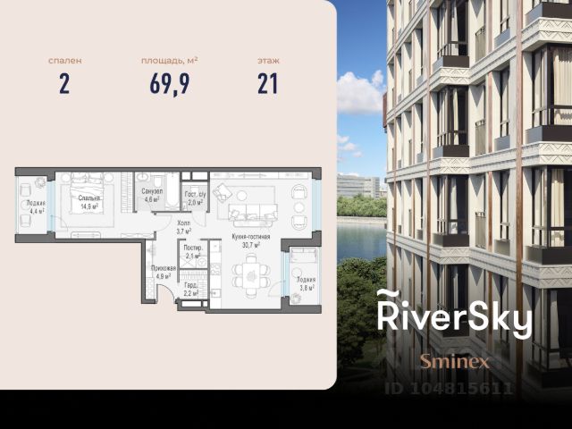 Квартира в рассрочку от девелопера. Первый взнос от 20%, срок на 6 или 12 месяцев. Подробные расчёты можно получить в доме продаж. Прямая продажа от застройщика. В жилом квартале, расположенном в Даниловском районе Москвы, продаётся 2-комнатная квартира площадью 69.90 кв.м без отделки. Квартира расположена на 21 этаже 21-этажного дома, корпус 6, в жилом квартале бизнес-класса RiverSky, который является частью жилого квартала FORIVER. Девелопер проекта - Sminex, который создаёт самую комфортную и престижную среду для жизни и работы. Преимущества комплекса: • Европейская архитектура домов, • Дизайнерские входные группы и общественные зоны, • Авторская концепция благоустройства квартала, интегрированного с Симоновской набережной Москвы-реки. На территории комплекса собственный детский сад с охраняемой территорией. Роскошный двор-сад с детскими и спортивными площадками, тихими зонами, прогулочными аллеями, местами отдыха. Отличная транспортная доступность: • От границ квартала до станции метро Автозаводская 1,3 км, можно дойти за 16 минут. • С территории есть выезды в сторону ТТК, путь составит 3 минуты на автомобиле, и в сторону центра города. • Садовое кольцо находится в 3 км, а дорога до Кремля займёт 9 минут. Расположение: Проект расположен на Восточной улице в Даниловском районе Москвы. Этот исторический район столицы на берегу живописной Симоновской набережной и ансамбля Симонова монастыря. Рядом с кварталом создаётся спортивный кластер вокруг нового стадиона Торпедо. В состав проекта входит физкультурно-оздоровительный комплекс, в стенах которого открыты секции бокса, залы единоборств, секции командных видов спорта, тенниса, лёгкой атлетики и йоги. Стоимость квартиры - 38 750 000 Р. Дом сдан. Более подробную информацию по объекту уточняйте по телефону и в отделе продаж.