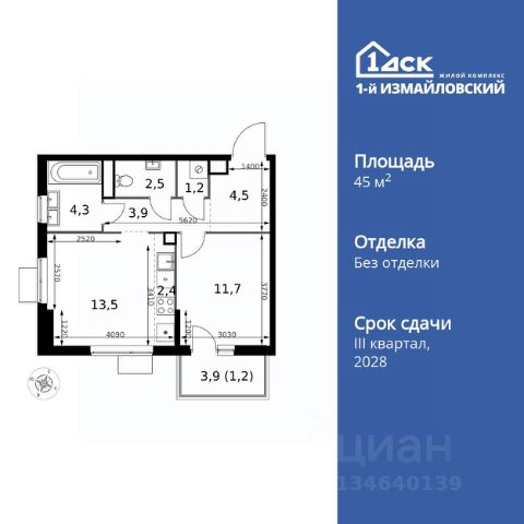 Прямая продажа от застройщика! Жилой Комплекс Комфорт класса. Продаётся 2-к квартира номер 335 общей площадью 46 кв.м. на 25-м этаже 25 этажного здания. Без отделки. Цена с учётом скидки. Особенности квартиры: - Линейная планировка - максимальная функциональность и удобство. - Раздельный санузел - больше удобства для всех членов семьи. - Увеличенная высота потолков - ощущение простора и легкости. - Можно оборудовать рабочее место - комфорт для работы и учёбы. - Лоджия - уютное место для отдыха и тишины. Информация о комплексе: Современный архитектурный проект "1-й Измайловский" - идеальное место для проживания, расположенное в восточной части Москвы в окружении 14 000 гектаров леса. Комплекс пронизан атмосферой здорового образа жизни и благополучия. Сиреневый сад и близлежащие лесопарки - это места, где можно насладиться лыжными прогулками зимой и тонизирующими пробежками летом. Расположенный между Щелковским шоссе и Амурской улицей, "1-й Измайловский" осмысляет себя не столько через близость к городским точкам притяжения, сколько через соседство с зелеными пространствами и спортивными объектами. Он отгорожен от шоссе застройкой первой линии и собственными садами здоровья. В его окнах - изумрудное море парка "Лосиный остров" и густые кроны окрестных дворов. В его графике - занятия спортом и прогулки в Измайлове. Транспортная доступность: Не более 2,5 км до станций метро "Щёлковская" и "Черкизовская" и МЦК "Локомотив". Щёлковское шоссе соединяет квартал с Северо-восточной хордой и МКАД, Центральным автовокзалом и Восточным железнодорожным вокзалом. Две автобусные остановки в паре минут ходьбы и 11 маршрутов общественного транспорта. На автомобиле 3 минуты до СВХ 12 минут до ТТК 15 минут до Садового кольца Внутренняя инфраструктура: Комплекс находится в исторически сложившемся районе Москвы с хорошим качеством и плотностью инфраструктуры. Торговые центры и сетевые магазины -6 детских садов, включая собственный детский сад на 125 мест -3 школы, включая собственную школу -Поликлиники и медицинские центры -Парки и зоны отдыха Расположение архитектурного проекта создает все условия для тех, кто стремится к здоровому образу жизни и для тех, кто уже сделал выбор в его пользу. В ближайшем окружении расположены несколько стадионов и множество спортивных объектов для занятий спортом на любой вкус: от всеми любимого футбола, баскетбола и до конного спорта. В окружении проекта более 30 километров организованных беговых и велодорожек.