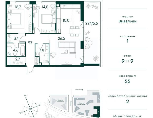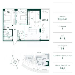Цена указана с учётом скидки при 100%-й оплате, несубсидированной ипотеке, рассрочке (кроме программы "Рассрочка 0%"). В жилом квартале продаётся 2-комнатная квартира площадью 44.70 кв.м white box. Квартира расположена на 48 этаже 48 этажного корпуса 1 в жилом комплексе комфорт класса Левел Звенигородская (компания Level Group/Левел групп). Отличная транспортная доступность - 5 мин. пешком до метро "Звенигородская" (откроется к окончанию строительства); - 18 мин. пешком до станции МЦК "Хорошёво" и станции БКЛ "Народное ополчение"; - 4 мин. на авто до ТТК; - 8 мин. на авто до Садового кольца; - 15 мин. на авто до Кремля. Продуманный архитектурный проект - Концепция от студии Станислава Михаловского, в основу которой легло единение природы и города; - Двухкамерные стеклопакеты в окнах, алюминиевый и ПВХ профиль - в квартирах тепло зимой и прохладно летом; - С верхних этажей откроются панорамные виды на город, Москву-реку, "Москва-Сити" и Москворецкий парк; - Лобби со всеми удобствами: окна в пол, высокие потолки до 4,7 м, лаунж-зоны, колясочные, гостевые санузлы и мойки для лап животных; - Централизованные водонагреватели гарантируют круглогодичную подачу горячей воды в каждую квартиру. Благоустройство Концепция благоустройства разработана совместно с бюро UNK landscape. Высота башен приближается к 200 метрам - они словно касаются неба. Небесный простор проецируется на территорию двора с помощью подсветки, визуально увеличивая пространство и отражаясь в авторских элементах архитектуры. На территории площадью 0,45 га расположатся: - "Облако событий" - место встреч и общения; - "Облако спорта" - всё для поддержания себя в форме; - "Облако принятия решений" - пространство для работы на свежем воздухе; - "Облако спокойствия" - для отдыха в тишине природы; - "Облако игр" - площадки для подростков и самых маленьких. Инфраструктура В жилом комплексе откроется 21 коммерческое помещение: продуктовые лавки, кафе, салоны красоты, службы доставки и творческие студии. Этап 1 включает строительство двухуровневого подземного паркинга. Всего здесь расположится 351 машино-место, включая семейные места, и 264 кладовых помещения. В распоряжении жителей развитая инфраструктура района: 15 супермаркетов, 5 спортивных объектов, 9 медучреждений, 7 детских садов, 4 школы, 3 благоустроенных парка - всё в шаговой доступности. Инженерия Комфортное перемещение внутри домов будут обеспечивать надёжные лифты с доступом в паркинг с жилых этажей. В каждом корпусе предусмотрено до шести кабин, включая сервисные лифты. Попасть на территорию комплекса можно только по единому ключу доступа. Видеонаблюдение установлено на входах в подъезды, в лобби, в общих зонах, на въезде в паркинг. Гости смогут связаться с жителями дома через входные видеопанели, а управлять доступом на территорию можно через видеодомофон или приложение на телефоне.
