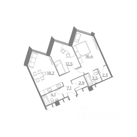 Спальня 2: кондиционер Panasonic; кровать-трансформер Olissys двуспальная (убирается в стену, превращаясь в диван); одна регулируемая батарея; шторы блэкаут и тюль Togas.