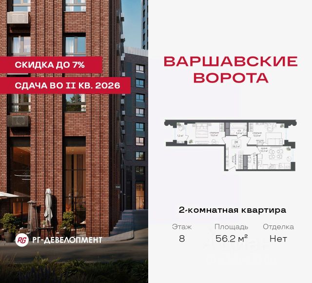 Рассрочка 0% + скидка 5%. Первый взнос 20%, второй — через 6 мес., остаток —до ввода. Продаются 2-комнатные апартаменты 58.7 кв.м. в МФК "Варшавские ворота" на 9-м этаже 9 этажного дома. МФК "Варшавские ворота" — это точка баланса между природой и городом, стилем и функциональностью, жизнью сегодня и устойчивым будущим. Коротко о важном: - 1 минута пешком от м. Аннино; - Удобные выезды на Варшавское шоссе и МКАД; - Высота потолков 2,7 - 3 м; - Закрытый двор-парк; - Школы и детские сады в 10-15 минутах пешком от дома; - Технические лоджии для размещения кондиционеров; - Подземный паркинг; - РГ-Девелопмент — ТОП-20 крупнейших застройщиков Москвы. Проект сочетает в себе современную архитектуру и продуманное благоустройство с уникальным природным окружением. Всего в нескольких минутах от дома — девять парков, каскад прудов и крупнейшие лесопарковые зоны Москвы, создающие ощущение жизни в зеленом оазисе посреди мегаполиса. Архитектурная концепция - стиль Чикаго в Москве. Фасады облицованы вентфасадами под клинкерную плитку. Фасады подчеркивают строгие линии и современный стиль, а входные группы разработаны московским бюро Синтаксис. Вестибюли оформлены с применением керамогранита, декоративной штукатурки и гипсовых панелей, детали из латуни добавляют изысканности. Проект находится в 1 минуте пешком от метро "Аннино", в 12 минутах от станции "Улица Академика Янгеля" и рядом с МЦД-2 "Красный Строитель". Для автомобилистов предусмотрен прямой выезд на Варшавское шоссе и два съезда на МКАД, что позволяет быстро добираться в любую часть города. Среди планировочных решений представлены разнообразные форматы: от функциональных студий до просторных 4-комнатных квартир и апартаментов. Высокие потолки усиливают ощущение простора, а продуманные планировки включают мастер-спальни, гардеробные, объединённые кухни-гостиные и несколько санузлов. Центральное пространство комплекса — закрытый двор без машин. Он разделён на функциональные зоны: детские игровые комплексы, спортивные площадки и уютные места для тихого отдыха. На первых этажах разместятся магазины, кафе и сервисы, что позволит решать повседневные задачи, не покидая территорию комплекса. Для семей с детьми предусмотрен частный детский сад на 50 мест. Подземная парковка и кладовые обеспечат удобство хранения и безопасность автомобилей. Комплекс окружён девятью парками и лесопарками, каждый из которых обладает своей атмосферой. Выйти на пробежку в Аннинском лесопарке, насладиться прогулками по аллеям в Битцевском лесу, спланировать пикник или велопрогулку в Покровском парке, любоваться каскадом Кировоградских прудов. Всего в двух станциях — музей-заповедник "Царицыно" с дворцами, фонтанами и живописными пейзажами. Здесь каждый житель найдёт своё любимое место для отдыха. Южное Чертаново - район развитой инфраструктурой, где сочетаются городские удобства и природное окружение. В шаговой доступности находятся школы, детские сады, спортивные комплексы и торговые центр