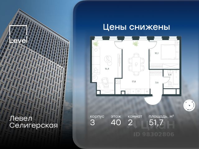 Прямая продажа от застройщика. Продаётся 2-комнатная квартира общей площадью 81.35 м² с предчистовой отделкой в ЖК "Селигер Сити" на 39-м этаже башни Лисицкого. Корпуса четвертой очереди ЖК "Селигер сити" названы в честь трех великих представителей науки и архитектуры, новаторское видение которых — слишком смелое для своего времени — нашло воплощение в уникальных домах жилого комплекса. Вдохновленные авангардными идеями знаменитого советского архитектора Эля Лисицкого, архитекторы создали яркий центр притяжения всего района, задающий новый стандарт жизни в современном мегаполисе — две высокие "Башни Лисицкого" с современной интерпретацией горизонтального небоскреба. Преимущества проекта: - 2 минуты пешком от метро "Селигерская" - Архитектурное решение от голландского бюро MLA + - Одна из самых больших придомовых территорий в Москве - Огороженная охраняемая территория, круглосуточное видеонаблюдение - Европейский подход к благоустройству от бюро Wowhaus: появится парадный бульвар, аллея с фонтаном и арт-объектом, что дополнит уже сформированное благоустройство: детские площадки для разных возрастов, площадки для воркаута, дорожки для бега и пеших прогулок, места для отдыха - Два детских сада, школа начальных классов и центр доп.образования - Искусственный пруд на территории комплекса с благоустроенной набережной и мостом - Продуманная концепция инфраструктуры: уютные кафе и рестораны, супермаркет, магазин фермерских продуктов, бытовые службы, салон красоты, детские сады - Ультрасовременные инженерные решения - Подземный паркинг с зарядными станциями для электромобилей, постами подкачки шин и келлерами - Лобби по индивидуальному дизайн проекту от европейского бюро Вlank Architects: лаунж-зоны, ресепшен, колясочная, помещение для мытья лап животным после прогулки - Надежный девелопер с опытом премиальных проектов MR Расположение комплекса: - 2 минуты от станции метро "Селигерская" - 7 минут на машине до станции метро "Окружная" - Предусмотрен удобный выезд в сторону ТТК (всего 9 км или 15 минут без пробок) - МКАД в 10 минутах на машине Компания MR предлагает своим клиентам специальные условия приобретения квартир в рамках программ ипотечного кредитования от банков-партнеров.