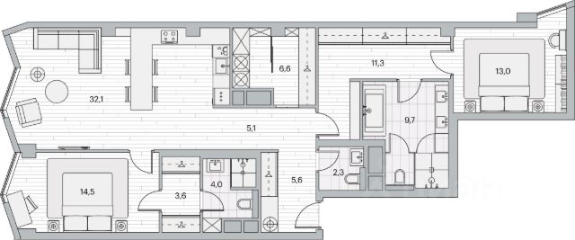 В премиальном квартале "Матч Поинт" представлены трехкомнатные апартаменты общей площадью 63,8 м² на 8 этаже. Уникальное пространство свободной планировки и большое количество окон позволяют реализовать любые интерьерные идеи. Вариант планировочного решения: Кухня-гостиная 14,2 м² — уютная зона для встреч с близкими. Две спальни — 12,5 и 18,1 м² — комфортные помещения для отдыха. Коридор 5,1 м² и прихожая 4,7 м² обеспечивают комфортную организацию пространства. Два санузла 2,2 и 5 м² — дополнительное удобство. Высота потолков 3,05 м создаёт ощущение воздуха и простора. О жилом квартале "Матч Поинт" Расположение, доступность, инфраструктура. Жилой квартал расположен в престижном районе Москвы — рядом с Кутузовским проспектом, Триумфальной аркой и станциями метро "Парк Победы", "Филевский парк", "Багратионовская" и "Минская". Парк Победы, Поклонная гора и Филевский парк создают прекрасные условия для отдыха. Вблизи расположены МГУ и МГИМО. Из окон комплекса открываются виды на Парк Победы, панораму Кутузовского проспекта, "Москва-Сити". В квартале работает полноценная инфраструктура: более 10 салонов красоты, аптека, химчистка, ателье, зоосалон, цветочный магазин, фотостудия. Есть кафе и рестораны, спортивные площадки, фитнес-клубы, детские центры и билингвальный детский сад. Трехуровневый подземный паркинг рассчитан на 1600 мест. Территория оборудована системой видеонаблюдения и современными системами безопасности. 2-комнатная квартира в готовой новостройке в районе Филевский парк в Москве.