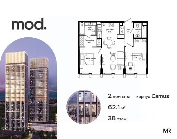 Прямая продажа от застройщика. Продается 2-комнатная квартира общей площадью 64.45 м² с предчистовой отделкой в ЖК премиум-класса Mod на 5-м этаже 44 этажного дома. Mod - жилой комплекс премиум-класса в историческом районе Москвы Марьина Роща. Пятый корпус станет частью единого высотного ансамбля, который поднимается над столицей и очерчивает новый горизонт города. Расположение корпуса Mod.C отличается тем, что виды на юго-запад Москвы не ограничены существующей застройкой. Почти все главные доминанты столицы — как на ладони: от сталинских высоток до небоскрёбов делового центра. Любоваться достопримечательностями будет вдвойне приятнее через панорамные окна. Закрытая территория жилого комплекса, продуманное благоустройство, эксплуатируемые кровли стилобата, образовательный центр с детским садом создают приватное пространство для тихой семейной жизни, а городская площадь с фонтанами, ресторан, супермаркет, коммерческая инфраструктура на первых этажах привносят созвучную с ритмом города динамику. Преимущества проекта: - В шаговой доступности новый деловой кластер Москвы - Выразительная авторская архитектура - Единственные в Москве фасады башен из натурального камня - Панорамное остекление и высота потолков до 4,8 м - Квартиры и апартаменты с отделкой MR Base - Многоуровневое благоустройство с зонированием на закрытой территории - Многофункциональный образовательный детский центр с детским садом - Двухуровневый подземный паркинг Транспортная доступность: - 5 минут пешком до станции метро "Марьина Роща" - 3 минуты до ТТК - 15 минут до Цветного бульвара Компания MR предлагает своим клиентам специальные условия приобретения квартир в рамках программ ипотечного кредитования от банков-партнеров.