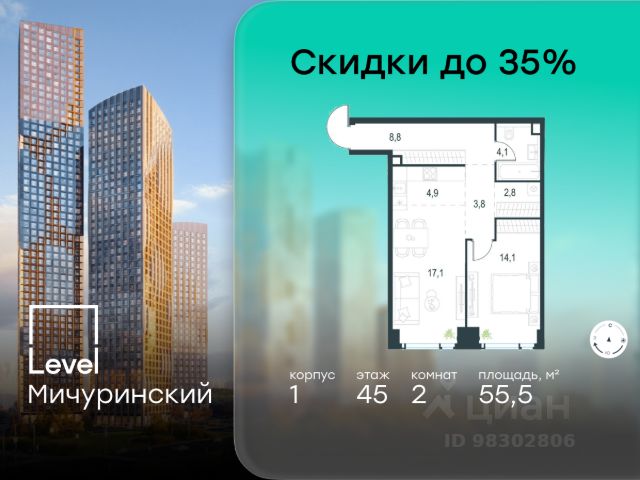 Продается евро 2-комнатная квартира на 20 этаже в строящемся доме (Корпус 1/Башня Creativity). Общая площадь квартиры 53.8 м2 и высота потолков 3.1 м. Устанавливаются премиальные окна Schuco с панорамным остеклением с функцией проветривания, конвекторы в полу. Светлая квартира с кухней-гостиной 24 м2 и большим санузлом. Окна квартиры с потрясающими видами на закат на Долину реки Сетунь. На каждом этаже есть технические балконы для установки системы кондиционирования. О ПРОЕКТЕ: Will Towers — жилой комплекс бизнес-класса в престижном районе Раменки. Здесь вас ждет жизнь в окружении зелени, на берегу реки Раменки, всего в 15 минутах от центра города. Три небоскреба с авторской архитектурой открывают панорамные виды МГУ, Поклонную гору, долину реки Сетунь и сияющие огни Москва-Сити. Насладитесь премиальными лобби, приватной территорией с собственной оранжереей и выходом к благоустроенной набережной. Will Towers — жилой комплекс, где городская динамика встречается с гармонией природа. Команда проекта: • Управление проектом: АО "СЗ "УЭЗ" (крупный российский девелопер) • Застройщик: ООО "Минские холмы" • Генподрядчик: ANT TEQ • Архитектурное бюро: СПИЧ • Дизайн интерьера лобби: Blank • Ландшафтный дизайн: GARDEN CITI Преимущества: Виды: • Панорамные виды на природные заказники "Воробьевы горы" и "Долина реки Сетунь" • Виды на парк "Олимпийской деревни", парк Победы, парк им. 50-летия Октября, Ботанический сад МГУ и Матвеевский лес • Виды на Москва-Сити Инфраструктура: • Собственный двор-парк 2,2 га с оранжереей • Выход на благоустроенную набережную р. Раменки • Охраняемая закрытая территория • Детские площадки для разных возрастов • Workout-площадка • Площадка для игры в волейбол и баскетбол • Ритейл на первых этажах: магазины, кафе, фитнес-центр, spa и многое другое • Территория для выгула собак Особенности проекта: • 27 оригинальных планировочных решений • Квартиры с террасами и пентхаусы • Высокие потолки: в квартирах 3.1 м, в пентхаусах 3,7 м • Кладовые помещения на этажах • Бесшумные скоростные лифты Sword и KONE • Панорамные окна • Система кондиционирования VRV • 5-уровневый подземный паркинг на 1 023 машино-места • Собственный выезд на проспект Генерала Дорохова • 4 мин до Третьего транспортного кольца • 7 мин до МГУ • 10 мин до Садового кольца