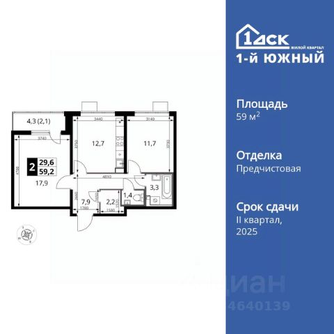 Прямая продажа от застройщика! Жилой Комплекс класса Комфорт Плюс. Продаётся 2-к квартира номер 318 общей площадью 59.5 кв.м. на 23-м этаже 25 этажного здания. Чистовая отделка. Цена с учётом скидки. Особенности квартиры: - МЦД-5 в пешей доступности - Квартал с южным садом - Свои 3 детских сада и 2 большие школы - Просторная спальня, в которой можно разместить большую кровать. - Линейная планировка - максимальная функциональность и удобство. - Гостевой санузел - комфорт и удобство для ваших гостей. - Раздельный санузел - больше удобства для всех членов семьи. - Просторная кухня - место для семейных ужинов и кулинарных экспериментов. - Просторная мягкая зона - комфорт и уют для отдыха всей семьи. - Возможность добавить спальное место - дополнительный комфорт для гостей. - Гардеробная - удобство для хранения и организации вещей. - Ниша под шкаф - компактное и удобное место для вещей. - Лоджия - уютное место для отдыха и тишины. Информация о комплексе: Одно из преимуществ проектов 1- ДСК большие застекленные лоджии. Другое преимущество честный евро-формат. Во всем проекте предусмотрена система Умный дом. В состав устанавливаемого пакета устройств входит: WiFi реле для управления группами потребителей, беспроводной кран перекрытия с эл. приводом, беспроводной сенсор протечки, Яндекс Станция Мини. Его расположение можно назвать удачным за счет транспортной доступности и близости к природным объектам. По соседству лес, а в каждом дворе плодовые деревья. Весной квартал окутывает бело-розовое облако: это цветут яблони, груши, сливы. К августу в воздух наполняется ароматом созревших плодов. Зимой среди покрытых инеем деревьев протянулась лыжня. Транспортная доступность: - Общественный транспорт: Действующая ж/д станция Булатниково (в перспективе будущая МДЦ D5) в пешей доступности, всего 10-12 минут. - Личный автотранспорт: Удобный выезд на трассу М4-Дон в сторону Москвы и области 850 м, до МКАД - 1 км Внутренняя инфраструктура: Красивые продуманные подъезды - еще одно преимущество проекта 1-й Южный. Вход в сквозные подъезды есть и с улицы, и со двора. Благодаря сплошному остеклению в них всегда светло и уютно. Подъезды расположены на уровне земли, поэтому и молодым родителям с коляской, и жильцам с ограниченными возможностями вход и выход неудобств не доставят. В помещении предусмотрено место под стойку ресепшен с выводом инженерных сетей. Если жильцы решат на общем собрании, что необходим охранник или консьерж, организовать для них рабочее место можно быстро и с минимальными затратами. В подъездах предусмотрены уборные для детей и взрослых. Колясочные в каждом подъезде позволяют поддерживать порядок и чистоту на этажах. На случай прогулки с четвероногим питомцем в непогоду в подъездах устроены лапомойки. Во дворах и на общественных территориях 1-ого Южного столько всего интересного для юных обитателей. Собственные 3 детских сада и 2 больших школы буквально под окнами Изюминка проекта - пешеходный бульвар-денд