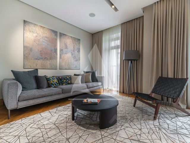 В каждой квартире установлены кухни от итальянского бренда Cesar со встроенной бытовой техникой премиальной линейки Smeg. Кухонный остров, столешница и фартук кухни выполнены из эксклюзивного итальянского мрамора Arabescato Grigio Orobico, одним из лучших видов мрамора на итальянском рынке натуральных отделочных камней.