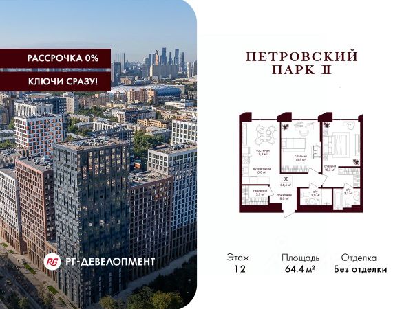 Рассрочка 0%. Первый платёж 30%, второй - не позднее 31.12.2026 г. Продаётся 2-комнатная квартира 67.4 кв.м. в ЖК "Петровский парк II" на 6-м этаже 24 этажного дома. ЖК "Петровский парк II" — жилой комплекс в Савёловском районе, где город ощущается иначе. Здесь история и масштаб Москвы не давят, а задают фон для спокойной, уверенной жизни рядом с центром. Это место, где статус читается не в громких формулировках, а в окружении, архитектуре и ощущении пространства. Коротко о важном: • Район с глубоким историческим контекстом и парковым окружением; • 5 минут пешком до метро "Динамо", рядом с деловой и культурной жизнью города; • Редкое сочетание: энергия мегаполиса и тишина зелёных аллей; • Архитектура от бюро Синтаксис с пластикой форм и индивидуальным характером фасадов; • Панорамные виды на город и зелёные массивы Петровского и Тимирязевского парков; • Закрытый двор без машин, вдохновлённый эстетикой дворцовых садов; • Просторные входные группы с высокими потолками и выверенной, респектабельной эстетикой; • Частный детский сад во дворе; • Подземная парковка и кладовые; • РГ-Девелопмент - ТОП-20 крупнейших застройщиков Москвы. Расположение комплекса формирует особое ощущение свободы выбора. Утром - прогулка по тенистым аллеям Петровского парка, днём - работа и встречи в деловых кластерах поблизости, вечером - культурные события, рестораны и городские пространства в нескольких минутах пути. Здесь расстояния измеряются не километрами, а шагами от дома. Архитектура "Петровского парка II" задумана как современный архитектурный акцент района и одновременно как уважительный диалог с исторической средой. Асимметричные объёмы, волнообразные элементы и игра света и тени создают выразительный, но сдержанный силуэт. Архитектура наполнена воздухом и визуальным ритмом, оставаясь спокойной и уверенной. Общественные пространства продолжают эту логику. Два парадных вестибюля с высокими потолками и благородной цветовой палитрой воспринимаются как пространства, где хочется замедлиться: встретить гостей, перевести дыхание после дня или просто почувствовать уровень среды, в которой вы живёте. Внутренний двор комплекса - это отдельный мир, закрытый от машин и городского шума. Продуманное благоустройство территорий отсылает к регулярным дворцовым садам: геометрия аллей, зелёные "кабинеты", цветники и камерные зоны отдыха создают разные сценарии для повседневной жизни. Здесь органично соседствуют детские игровые пространства, спортивные зоны и тихие места для отдыха. На территории комплекса расположены магазины, кафе и рестораны, а также частный детский сад, встроенный в общую структуру двора. Подземная парковка и кладовые поддерживают ощущение порядка и цельности пространства.