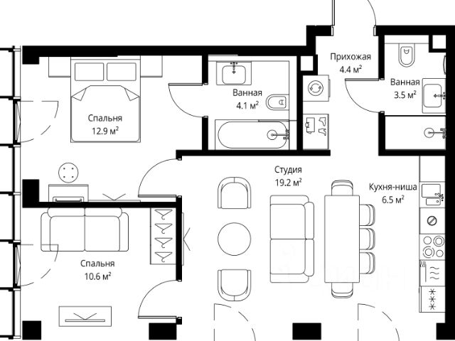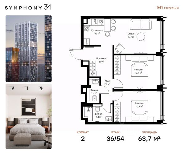 Дом сдан. Ключи в день покупки! В продаже 2-комнатная квартира площадью 63.20 м² с предчистовой отделкой на 27 этаже 54 этажного дома в корпусе Графит. ЖК Симфония 34 - концептуально новый жилой комплекс премиум-класса с подземной парковкой, состоит из четырех башен высотой 36 - 54 этажа. Квартиры сдаются с базовой (предчистовой) отделкой MR BASE или дизайнерской чистовой отделкой MR READY. Высота потолков 3 - 6 метров, окна высотой до 2,6 м. Более 100 кладовых в подземной части ЖК и более 500 на этажах. Безопасность - Система контроля входа на территорию комплекса, биометрия - Система автоматического водяного пожаротушения и противопожарного водопровода, система пожарной вентиляции - Доступ на парковку при помощи системы распознавания автомобильных номеров, карточка для контроля доступа резидентов - Система видеонаблюдения - Круглосуточная связь через приложение, телефон, голосовые сообщения с охраной, консьержем, call-центр. Расположение Пешком - 6 минут до метро "Дмитровская" - 15 минут до Тимирязевского парка На машине - 5 минут до Савеловского вокзала и Аэроэкспресса в Шереметьево - 10 минут до Москва-Сити и Садового кольца Благоустройство - 70% территории отведены под зеленые насаждения и ландшафтный дизайн - Приватный Японский сад - Детские площадки с зонированием по возрасту - Clubhouse для резидентов - Wellness & SPA - Зона для пикника, зона с гамаками - Центральное лобби, ресторан, коммерческие помещения - Дополнительный вход/выход на территорию комплекса Окружение - В 10 минутах от Symphony 34 находится дизайн-завод Flacon, где регулярно проходят культурно-образовательные и развлекательные мероприятия - Тимирязевский парк расположен в 850 м. Площадь парка 232 га - Рядом расположен парк "Дубки", площадью 16,5 га. - В 15 минутах расположен Хлебозавод 9. Здесь находятся шоурумы брендов, кафе разных кухонь мира, образовательные проекты и площадки для мероприятиКомпания MR предлагает своим клиентам специальные условия приобретения квартир в рамках программ ипотечного кредитования от банков-партнеров. 2-комнатная квартира в готовой новостройке рядом с метро Дмитровская.