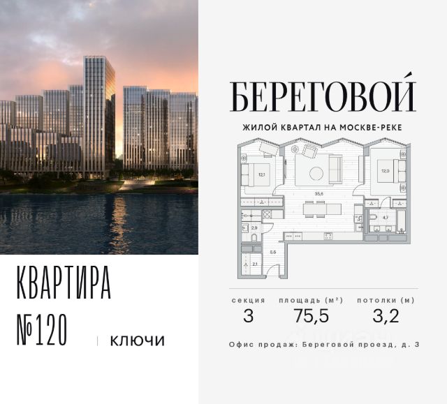 Прогнозный рост стоимости +50% в течение 2,5 лет.* Река. Парк. Сити. Готовый дом в идеальном месте. Продается 2-комнатная квартира на 12 этаже с панорамным остеклением и видом на закрытый парковый двор. Береговой — квартал курорт в центре столицы. Пешеходная набережная начинается от дома: никаких дорог между вами и рекой. Уникальное сочетание природы парка Фили и ритма Сити. Инвестиционный потенциал — в развитии территории: продление набережной, открытие детского образовательного кластера, премиального фитнеса и гастрономических пространств. Ввод всех корпусов жилого квартала поддержит рост стоимости. Начните действовать выгодно уже сегодня. Ключи от нового образа жизни в Береговом: 12 террас на крышах — виды на Москву с высоты птичьего полета Лобби с камином, переговорной и консьерж-сервисом Большой премиум-фитнес (4700м2) с бассейном, термами и спа-комплексом Детство на берегу Москвы-реки — для маленьких резидентов будут построены школа и детский сад на 1000 и 300 мест Гастрономическая набережная: рестораны и премиум-сервисы откроются на первых этажах Причал "Береговой" рядом с домом — путешествуйте по городу, пока другие стоят в пробках Безопасность и уединение: контроль доступа, видеонаблюдение и круглосуточная диспетчерская Двухуровневый подземный паркинг и кладовые. Безупречная квартира для жизни: Пространство света и воздуха: панорамные окна и высокие потолки 3.2 м Технологии: центральное кондиционирование и роботизированная система очистки фасадов — вид из окна всегда будет идеальным Совершенство планировки: просторная кухня-гостиная и максимум полезной площади Квартира без отделки — возможность создать уникальный интерьер в вашем уникальном стиле. Или выбирайте свою версию идеального дома в коллекции планировок: С изолированными спальнями Мастер-спальнями с гардеробными и ванными Видовые ванные комнаты Функциональные постирочные Эксклюзивные лоты: Пентахусы с приватными террасами Двухуровневые пентхаусы Локация, о которой мечтают: 10 минут до Сити — и вы в эпицентре деловой жизни. Две станции метро в пешей доступности — когда каждая минута на счету. Утром — пробежка по парку Фили, вечером — прогулка на велосипеде вдоль реки, выходные — водный спорт в Крылатском. Речные трамвайчики вместо такси, зеленые парки и благоприятная экология — привилегии престижного ЗАО Москвы. В 2025 году открыт мост Академика Королева, что обеспечило дополнительный выезд на ТТК и Звенигородское шоссе. Условия покупки: выгодные программы покупки от застройщика, специальные условия при полной оплате. Оставляйте заявку на персональную презентацию в шоу-руме. *Не является индивидуальной инвестиционной рекомендацией.