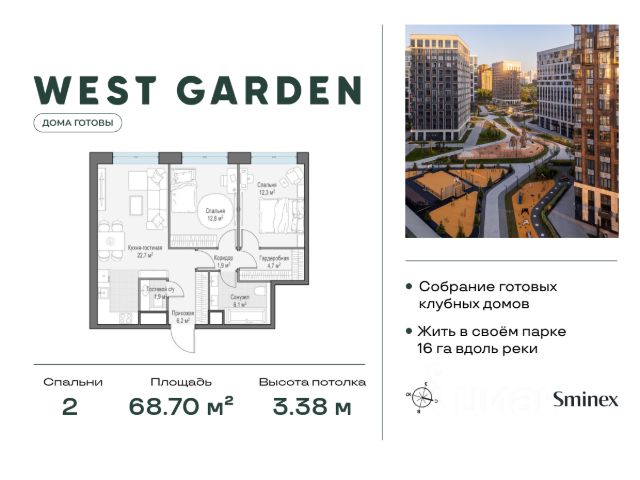 О ПРОЕКТЕ: Семейный жилой комплекс бизнес-класса в Раменках. Новые высотные башни в пойме реки Раменки — одном из самых зеленых районов столицы. Квартиры и пентхаусы с панорамными видами на любимый город и долину реки, собственные террасы и приватная территория, где продумана каждая деталь, чтобы вы могли забыть о мелочах и сосредоточиться на главном — вашем будущем и будущем вашей семьи. Каждая башня Will Towers имеет свой индивидуальный характер, поэтому носит свое уникальное название. Башни CREATIVITY, ENERGY и INSPIRATION. Название башен отражает внутреннюю философию проекта. Это атмосферное место притяжения для вас и вашей семьи, наполненное неиссякаемой энергией природы. КОМАНДА ПРОЕКТА: - Комплекс жилых небоскребов Will Towers в Раменках строится под управлением крупнейшего российского девелопера АО "УЭЗ", застройщиком выступает ООО "Минские холмы" - Генподрядчик ANT TEQ - Авторская архитектура от бюро СПИЧ - Дизайн интерьера лобби от Blank Architects - Благоустройство от ведущего ландшафтного дизайн-бюро GARDEN CITI ПРЕИМУЩЕСТВА: - Панорамные виды на природные заказники "Воробьевы горы" и "Долина реки Сетунь", парк "Олимпийской деревни", парк Победы, парк им. 50-летия Октября, Ботанический сад МГУ и Матвеевский лес, а также Москва-Сити - Собственный двор-парк и оранжерея - Свой выход на благоустроенную набережную р.Раменки - Охраняемая закрытая территория - Детские площадки для разных возрастов - Workout- площадка - Площадка для игры в волейбол и баскетбол - 2 детских сада и школа на территории - Вся инфраструктура на территории комплекса - Зона для BBQ и отдыха - Территория для выгула собак - Отсутствие высотной застройки рядом - 27 оригинальных форматов планировочных решений - Квартиры с террасами и пентхаусы - Кладовые помещения на этажах - Бесшумные скоростные лифты - Панорамные окна - Система кондиционирования VRV - Подземный и наземный паркинг - Свой выезд на проспект Генерала Дорохова - 4 мин. до ТТК, 7 мин. до МГУ и 10 мин. до Садового Купить 2-комнатную квартиру в готовой новостройке рядом с метро Минская.