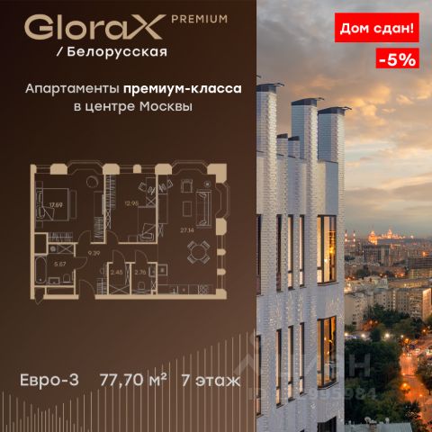 Продается 2-комн. апартамент на 4-м этаже в клубном доме премиум-класса GloraX Premium Белорусская. Общая площадь лота составляет 78,35 кв. м, из которых 33,46 кв. м отведено под жилую зону. Номер апартамента - 31. Цена лота указана с учетом НДС. Преимущества лота: кухня-гостиная с двумя эркерными окнами; 2 окна в спальнях; 2 санузла; гардеробная. GloraX Premium Белорусская это клубный дом премиум-класса в историческом и деловом центре Москвы. Проект расположен всего в 5 минутах от Тверской улицы и 15 минутах от Кремля и Манежной площади. GloraX Premium Белорусская воплощает в себе лучшие традиции современной архитектурной мысли: оригинальная геометрия фасадов из натурального камня, эффектное сочетание в отделке клинкерного и глазурованного немецкого кирпича, контрастные металлические акценты. В клубном доме представлено всего 183 лота площадью от 31 до 145 квадратных метров, начиная от эргономичных студий до просторных трехкомнатных апартаментов и пентхаусов. Реализована увлеченная площадь остекления, эркерные окна, просторные кухни-гостиные, мастер-спальни, гардеробные и кабинеты. 60% апартаментов имеют завораживающие панорамные виды на яркие доминанты города: Москва-Сити, Останкинскую башню, здание МГУ на Воробьёвых горах, Дом Правительства, высотку на Краснопресненской набережной. Апартаменты сдаются без отделки и с предчистовой отделкой White Box. Резидентам GloraX Premium Белорусская доступна вся насыщенная жизнь центра, премиальный сервис и клубная инфраструктура дома с собственным фитнес-залом, лаунж-зоной с камином и винным шкафом. Благоустройство и интерьеры от бюро AEDAS с приватными зонами и собственным водопадом. Это премиальный проект, где используются современные технические решения, призванные создавать максимальный комфорт и обеспечивать резидентам комплексную безопасность. Заказ и управление всеми сервисами осуществляется через удобное мобильное приложение с интуитивно понятным интерфейсом, либо через сотрудников управляющей компании, которые помогут по вопросам проживания круглосуточно. Системы "Умный дом" и Умная квартира" обеспечивают согласованную работу всех инженерных систем, а также управляют электричеством, климатом, освещением и бытовыми приборами. Купить 2-комнатную квартиру в готовой новостройке рядом с метро Савеловская.