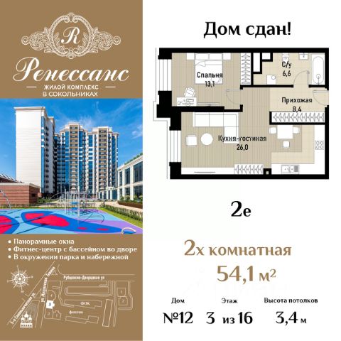 Жилой комплекс премиум-класса "Ренессанс" расположен на Рубцовско-Дворцовой улице старинного района Сокольники, в нескольких минутах ходьбы от знаменитого парка "Сокольники" - самого большого парка Москвы и одного из крупнейших в Европе, где круглый год можно прекрасно проводить время всей семьей. Из панорамных окон премиального бренда Schuco открываются завораживающие виды на сияющие в лучах солнца купола церквей и храмов, изумрудную зелень легендарного парка "Сокольники" и национального парка "Лосиный остров", излучины реки Яузы с величественной гранитной набережной, старинные здания, среди которых дворец императрицы Елизаветы Петровны, небоскребы "Москва-Сити", Останкинскую телебашню и приватную, охраняемую территорию комплекса с концепцией "двор без машин", изысканным ландшафтным дизайном, богатой коллекцией растений, пространствами для отдыха с роскошным фонтаном с красивой подсветкой, элегантной перголой, большими шахматами, детскими городками и спортивными площадками. Роскошный интерьер лобби: натуральный испанский мрамор, вертикальный фонтан, репродукции картин эпохи Возрождения, великолепная итальянская люстра ручной работы с подвесками из хрусталя CutCrystal и муранского стекла, иранские ковры и дизайнерская мебель. Лифты премиум-класса ThyssenKrupp. Консьерж-сервис. На этажах мусорокамеры закрытого типа. Из квартиры можно связаться с консьержем по видеодомофону британской компании BAS-IP. Уникальная транспортная доступность: 5 мин. на авто - до ТТК и Русаковской эстакады; 10 мин. - до Садового кольца и улицы Земляной Вал; 15 мин. - до Кремлевской набережной. В шаговой доступности - ст. м. и БКЛ "Сокольники" и "Электрозаводская". Развитая собственная инфраструктура: подземный паркинг, здание фитнес-центра с бассейнами, объекты торговли и сферы услуг. Отличная инфраструктура респектабельного района Сокольники: детские сады, элитные общеобразовательные, музыкальные и спортивные школы, ТЦ, рестораны, банки.