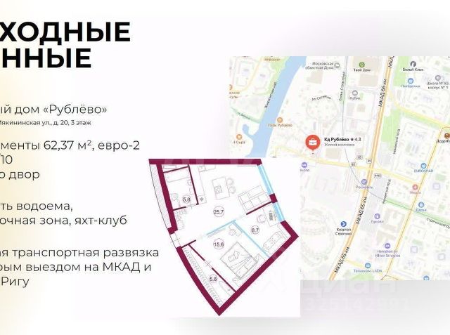 ПРЕИМУЩЕСТВОМ проекта является наличие всего необходимого для комфортного проживания: гармонично соседствует с жилой зоной, зонами бизнеса и торговли. Здесь сосредоточены торгово-выставочные центры и ухоженные территории ЖК парк Рублево.