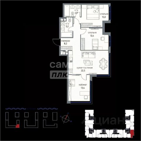 Арт. 133239666 Описание объекта Эксклюзивное предложение от компании "Самолёт Плюс", для наших клиентов, ипотека от 11,9% Продаётся квартира площадью 82,4 кв.м, в черновой отделке на на 7 этаже 11-этажного дома проекта "Остров". О КВАРТИРЕ: Функциональная планировка, большие окна. Три отдельных комнаты, 13,4, 13,4 и 15 м², и просторная кухня-гостиная 22,5 м². Два совмещенных санузла. Общая площадь: 82,4 м² Жилая площадь: 26.6 м². ИНФРАСТРУКТУРА: ЖК "Остров" находится в одном из самых перспективных и экологически чистых столичных районов. Будет оборудован пляж, прогулочная и спортивная зона. Отличная спортивная инфраструктура: велодорожки, горнолыжный склон, гребной канал, фитнес-центры. ТРАНСПОРТНАЯ ДОСТУПНОСТЬ: Meтро Терехово: 12 минут пeшкoм. Метро Мневники: 25 минут пешком. С самой территории легко попасть на Северо-Западную хорду. Всего в 10 минутах на автомобиле расположен деловой центр Москва-Сити, а поездка до Садового кольца занимает 15 минут. БИЗНЕС-КЛАСС: дизайнерское лобби, консьерж-сервис, собственный тренажёрный зал, коворкинг, детская комната, закрытые дворы с площадками, лапомойки для собак. Два собственника (муж с женой). Свободная продажа. Отсутствуют зарегистрированные лица. ЛЕГКО КУПИТЬ: Оказываем содействие в одобрении ипотеки на выгодных условиях. Гарантия юридической чистоты сделки от компании. Быстрый выход на сделку; Звоните и записывайтесь на показ объекта прямо сейчас! Рады будем ответить на все ваши вопросы. Оперативный показ. "ООО "Самолет Плюс" (ОГРН 1067746757704) оказывает консультационные услуги по подбору программы кредитования, подходящей по условиям и требованиям к клиенту как к заемщику и к приобретаемому им объекту недвижимости. Конкретные условия зависят от банка, программы кредитования и иных требований."