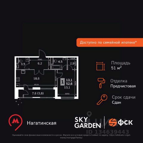 Прямая продажа от застройщика! Жилой Комплекс бизнес-класса. Продаётся 2-к квартира номер 1138 общей площадью 54.6 кв.м. на 19-м этаже 27 этажного здания. Чистовая отделка. Цена с учётом скидки. Особенности квартиры: - Мастер-зона с гардеробной. Просторное место для отдыха и удобного хранения вещей. - Просторная спальня, в которой можно разместить большую кровать. - Линейная планировка - максимальная функциональность и удобство. - Увеличенная ширина окна/окон - больше света и визуального простора. - Раздельный санузел - больше удобства для всех членов семьи. - Евроформат - просторное и удобное жилье с отличной планировкой. - Гибкая планировка - создайте пространство по своему вкусу. - Можно оборудовать рабочее место - комфорт для работы и учёбы. - Проходная кухня-гостиная - идеальное пространство для общения и готовки. - Гардеробная - удобство для хранения и организации вещей. - Ниша под шкаф - компактное и удобное место для вещей. - Лоджия - уютное место для отдыха и тишины. Информация о комплексе: Sky Garden расположен в районе Покровское-Стрешнево. На территории этого района шумит листвой одноименный парк. Зеленый живописный район, реки и каналы поблизости, чистый свежий воздух из подмосковных листов - идеальное место, чтобы ощутить себя частью природы. При этом развитая образовательная, социальная и транспортная инфраструктура оставят вам все преимущества жизни в мегаполисе. Sky Garden - идеальный баланс между природной и городской средой. Транспортная доступность: Всего в 12 минутах пешком до м. Тушинская и 15 минутах до станции Тушинская МЦД. На автомобиле: 2 км до Волоколамского шоссе, 2,5 км до МКАД и 15 км до Садового кольца Внутренняя инфраструктура: К вашим услугам современные игровые площадки: тут ваши дети с удовольствием смогут лазить по бревнам, штурмовать горки и стараться не промокнуть, бегая под струями фонтана. В Sky Garden полно возможностей как для совсем маленьких, так и для взрослых. Предусмотрены активности: мастер классы по йоге на английском газоне, воркаут- площадка, велопарковки. Также в вашем распоряжении на территории комплекса будут: поликлиника, аптека, супермаркет, зона для отдыха, сухой фонтан и площадка для подростков. Пространство для работы, оборудованное кофепоинтом и удобными переговорными. Также к вашим услугам кафе и рестораны в коммерческом кластере. Игровая комната, расположенная в центральном лобби, оборудована двухэтажным комплексом, мягкими татами, книжками и играми, способными увлечь ребятню В каждом подъезде на минус первом этаже оборудованы комнаты для хранения взрослых и детских велосипедов, колясок и самокатов Вкуснейшая горячая выпечка, ресторан с любимыми блюдами, надежная мастерская по ремонту обуви, художественная или спортивная секция для ребенка, фитнес или йога для вас, а также всё, что вам нужно для повседневной жизни - есть в нескольких минутах от вашего подъезда Внутри проекта расположена парковая территория площадью 3,5 га с игровыми и спорти