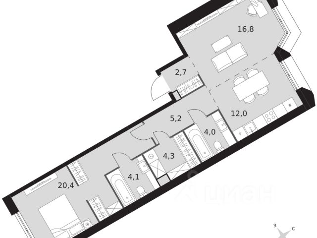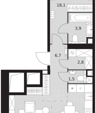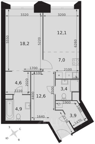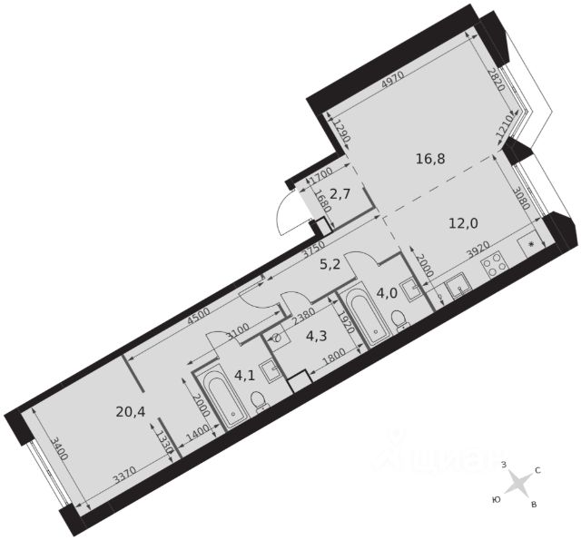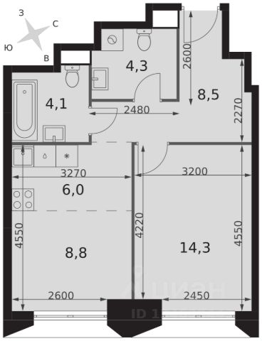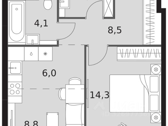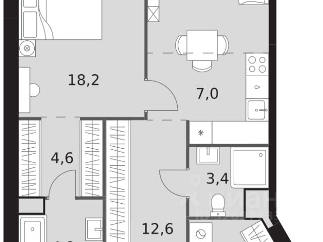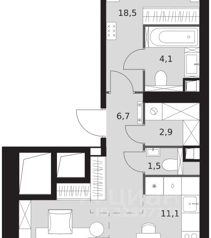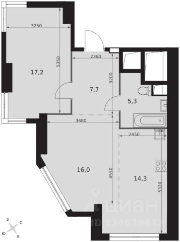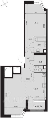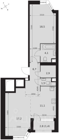 2-комн. квартира в ЖК "Ever" на 4 этаже в 34 этажном здании Корпус 5. Общая площадь: 55.4 кв.м., жилая: 29.5 кв.м. Высота потолков 3.00 м.