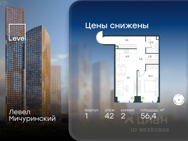 Цена указана с учётом скидки при 100%-й оплате, несубсидированной ипотеке, рассрочке (кроме программы "Рассрочка 0%"). В жилом квартале, расположенном на границе с природным заказником "Долина реки Очаковки", продаётся 2-комнатная квартира площадью 51.70 кв.м с отделкой white box. Квартира расположена на 34 этаже 37-этажного корпуса 5 в жилом комплексе бизнес-класса Левел Мичуринский (компания Level Group/Левел групп). Отличная транспортная доступность: - от 10 мин. пешком до станции метро "Мичуринский проспект" - 15 мин. пешком до станции метро "Аминьевская" - 7 мин. на авто до МКАД - 10 мин. на авто до ТТК - 15 мин. на авто до Москва-Сити Продуманный архитектурный проект: - Выразительная архитектура от известных бюро: корпуса 1-6 - бюро СПИЧ, корпуса 7-13 - архитектурное бюро Анатолия Борисова; - Из окон открываются живописные виды на парки, Москва-Сити и МГУ; - Высокие потолки до 6,35 м; - Стильные лобби с окнами в пол и высокими потолками до 4,7 м; - С каждого этажа дома на лифте можно спуститься в подземный отапливаемый паркинг. Расположение: Жилой комплекс Левел Мичуринский строится в одном из самых зелёных районов Москвы - Очаково-Матвеевское. Этот уголок столицы идеален для поддержания здорового образа жизни. В шаговой доступности от проекта находятся заказник "Долина реки Очаковки" - 1 мин. пешком и Очаковский парк - 7 мин. пешком. На велосипеде можно добраться до таких парков, как "Событие", парк Олимпийской деревни, парк 50-летия Октября и парк Школьников. В 15 минутах езды на авто расположено более 30 детских садов (из них 14 в пешей доступности), 32 школы (из них 13 в пешей доступности) и 14 вузов. Также в ближайшем окружении - более 25 медицинских учреждений, 11 спортивных клубов и 22 продуктовых супермаркета. Внутренняя инфраструктура: На территории жилого комплекса строится три детских сада и школа. На первых этажах домов откроется супермаркет, фитнес-центр, ресторан, кафе и другие сервисы. Подземные этажи займут паркинги: трёхуровневые - в этапах 1 и 2, одноуровневый - в этапах 3 и 4. Преимущества проекта: - 4,5 га благоустроенной территории с видовым мостом, уличным кинотеатром, зонами для тихого отдыха, работы, уличных тренировок, площадки для петанка, футбола, настольного тенниса и пляжного волейбола. - Дизайнерские лобби с панорамным видом на двор, мойками для лап животных и комфортными зонами ожидания. - Безопасность жителей: круглосуточное видеонаблюдение всех зон общего пользования (лобби, лифты, паркинги, детские площадки), система контроля доступа, управление видеодомофоном через мобильное приложение, единый ключ доступа на территорию жилого комплекса. - Технологии и комфорт: высокоскоростной вайфай в лобби и на придомовой территории, автоматическая система контроля и учёта ресурсов, абонентская связь с консьержем, распознавание номеров автомобилей при въезде в паркинг и выезде из него.