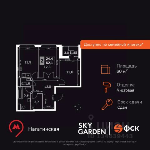 Прямая продажа от застройщика. Продаётся 2-комнатная квартира общей площадью 56.90 м² с предчистовой отделкой в ЖК City Вау на 12-м этаже 53 этажного дома. Концепция жилого комплекса City Вау - настоящий город в городе с отлично развитой инфраструктурой и собственной благоустроенной набережной. На территории жилого комплекса расположено пять кварталов - Atlantic, Pacific, Indian, North, Cliff. Жилой квартал City Вау отличается оригинальной концепцией и выделяется среди других проектов такими характеристиками как: - Архитектура, - Виды из окон, - Природное окружение, вызывая гордость у жителей и восхищение у прохожих. Вся жизнь района Покровское-Стрешнево строится вокруг водных объектов: - Пойма реки Сходни с уникальной экосистемой, - Речка Химка и Химкинское водохранилище, - Москва-река, - Канал имени Москвы. Кругом вода, и местные с удовольствием этим пользуются. А сразу за рекой - центр водного спорта в Строгино с вейк-парком и яхт-клубами. Помимо воды, здесь очень много зелени: - Рядом Сходненский ковш памятник природы, естественный амфитеатр глубиной 40 метров; - Парк при усадьбе Братцево с фруктовым садом; - Дубовая роща "Маяк", - Алешкинский лес; - Лесопарк Покровское-Стрешнево с пляжами и бобрами. Главные транспортные артерии района: - Волоколамское шоссе, - Таганско-Краснопресненская линия метро и МЦД-2. Всего за 20 минут можно добраться до центра на машине или метро, а МЦД связывает ЖК City Вау с северными, восточными и юго-восточными районами. Компания MR предлагает своим клиентам специальные условия приобретения квартир в рамках программ ипотечного кредитования от банков-партнеров. Купить 2-комнатную квартиру в готовой новостройке в районе Покровское-Стрешнево в Москве.