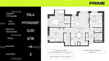 Общая площадь, включая 2 террасы и 2 лоджии, составляет 434,1 кв. м.